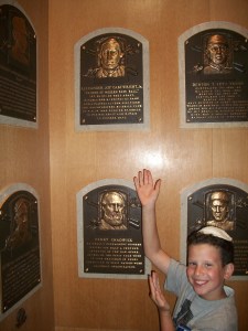 I love that room. This was my third time there and it was just as awe-inspiring as the first time. Even better, Sam loved it. He looked at every plaque, checking for players he’d heard of (he counted exactly 40). He was especially excited to see the plaque for Alexander Cartwright, known as the Father of Modern Baseball and in whose honor Sam got his middle name, Alexander.