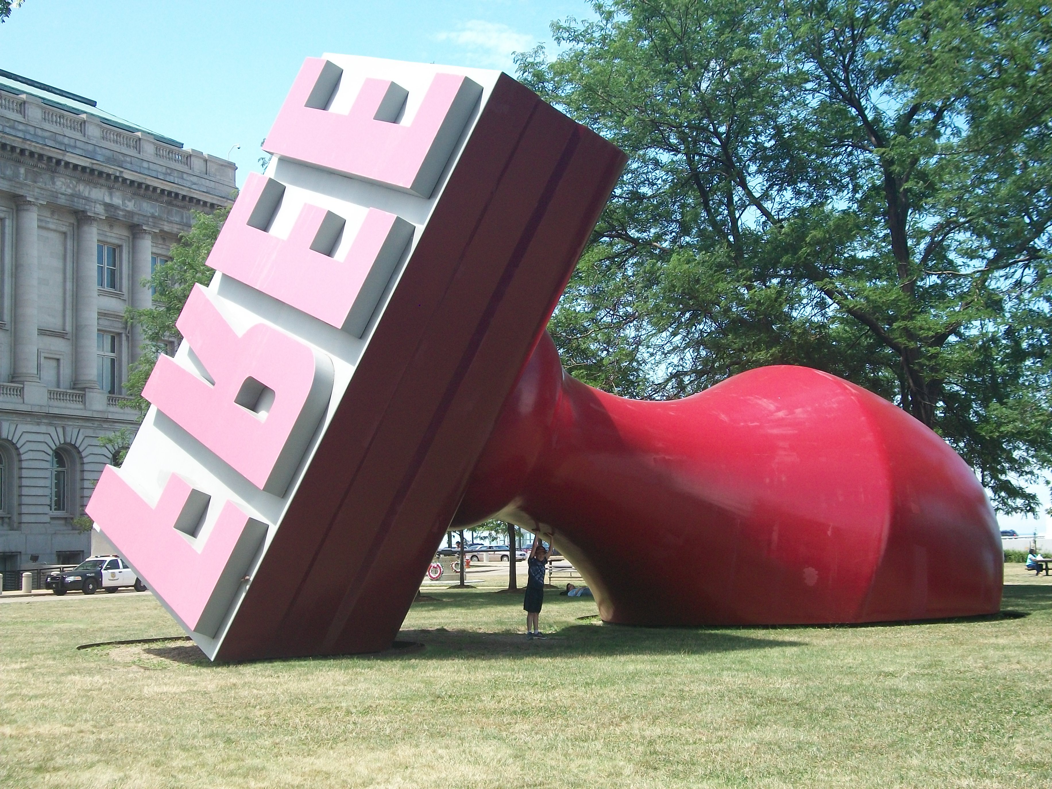 Anyway, after the stadium tour we walked back to the hotel, ate cold cuts for lunch, and then headed to the Rock Hall, as the locals call it. On the way we bumped into the giant FREE stamp in front of city hall.