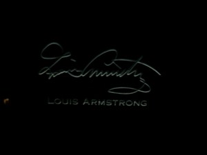 The Rock Hall itself, our third hall of fame in four days, was a big disappointment. But that wasn’t the Hall’s fault. I think Sam was just a bit too young for it. I’ve already mentioned his deplorable, commercialized taste in music, and since Jason Derulo and Justin Bieber and whoever sings that annoying Hamster Dance song aren’t enshrined in the Hall, Sam didn’t recognize 99% of the artists and thus was uninterested in just about every exhibit and rushed me through the whole seven-story building in about an hour. It’s too bad, because I would have enjoyed spending a little more time there and looking at some of the stuff for which he had no appreciation. We did, once again, linger in the part of the building where all the inductees are honored. It was done in a very unusual and cool way: a circular theater played a short movie composed of clips of performances from and/or interviews with all the inductees, organized by year of induction. Circling the theater concentrically was a narrow, ramped corridor that was completely dark. One wall of this dark corridor (the outer one) was covered in glass or some glass-like substance, into which the signatures of every inductee were etched and backlighted, so that the only light in this rounded corridor was from the signatures of the inductees. And rather than being organized by year of induction they were organized alphabetically, so it was super easy to find anyone we were interested in. Photos are not allowed in most of the museum but I snuck a few anyway.