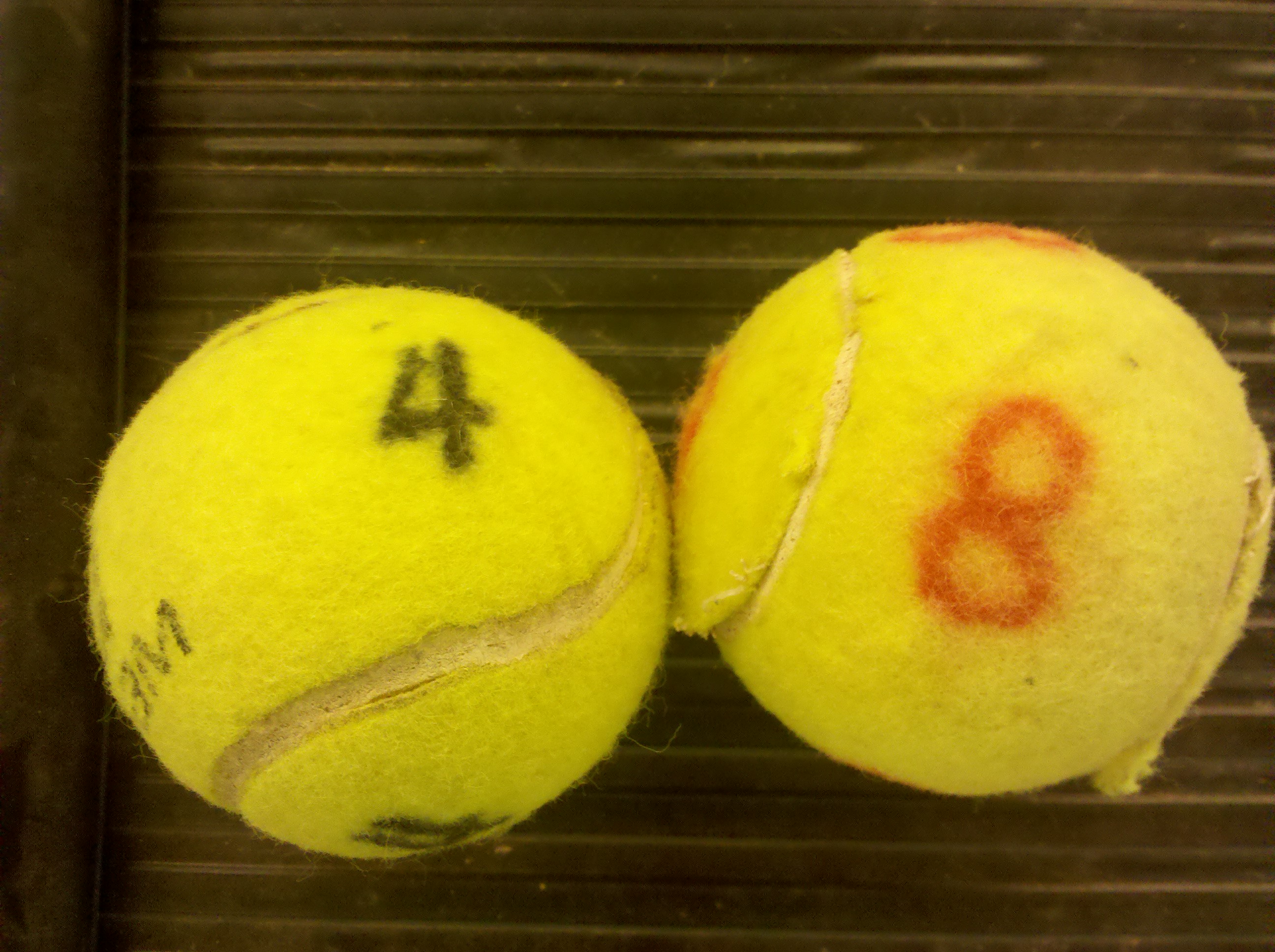 Another particularly cool part of the tour was the indoor batting cages. There were two regular cages and two that blew me away. One was a computerized pitching machine for which the batting coach can enter an opposing pitcher and a sequence and then video of that pitcher throwing those pitches will be shown on a giant screen on the pitcher’s mound while the ball comes flying out of a hole in the screen. The last cage had a tennis ball cannon, which was not too exciting except that our tour guide showed us these: