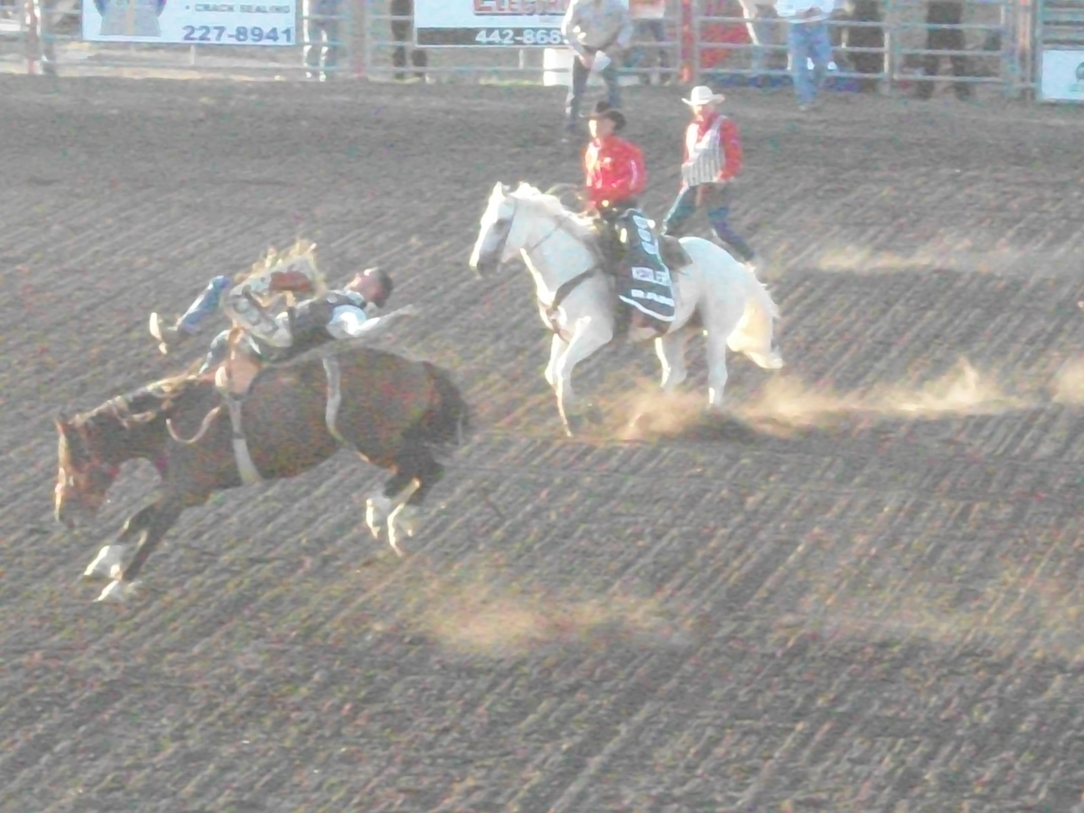 3) How the announcer guy, the clown, and the music over the PA system all continued doing their thing even while cowboys were performing