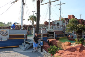 Reunited, the three of us headed off to check into our hotel and visit the only kosher restaurant in the area to pick up food for shabbos. Those two activities took more than two hours, but we still managed to find time to ride the tallest Ferris wheel east of the Mississippi and play 18 holes of minigolf at a pretty darned-impressive pirate-themed course complete with cannon blasts, shipwrecks, and treasure-filled caves that we had to play through.