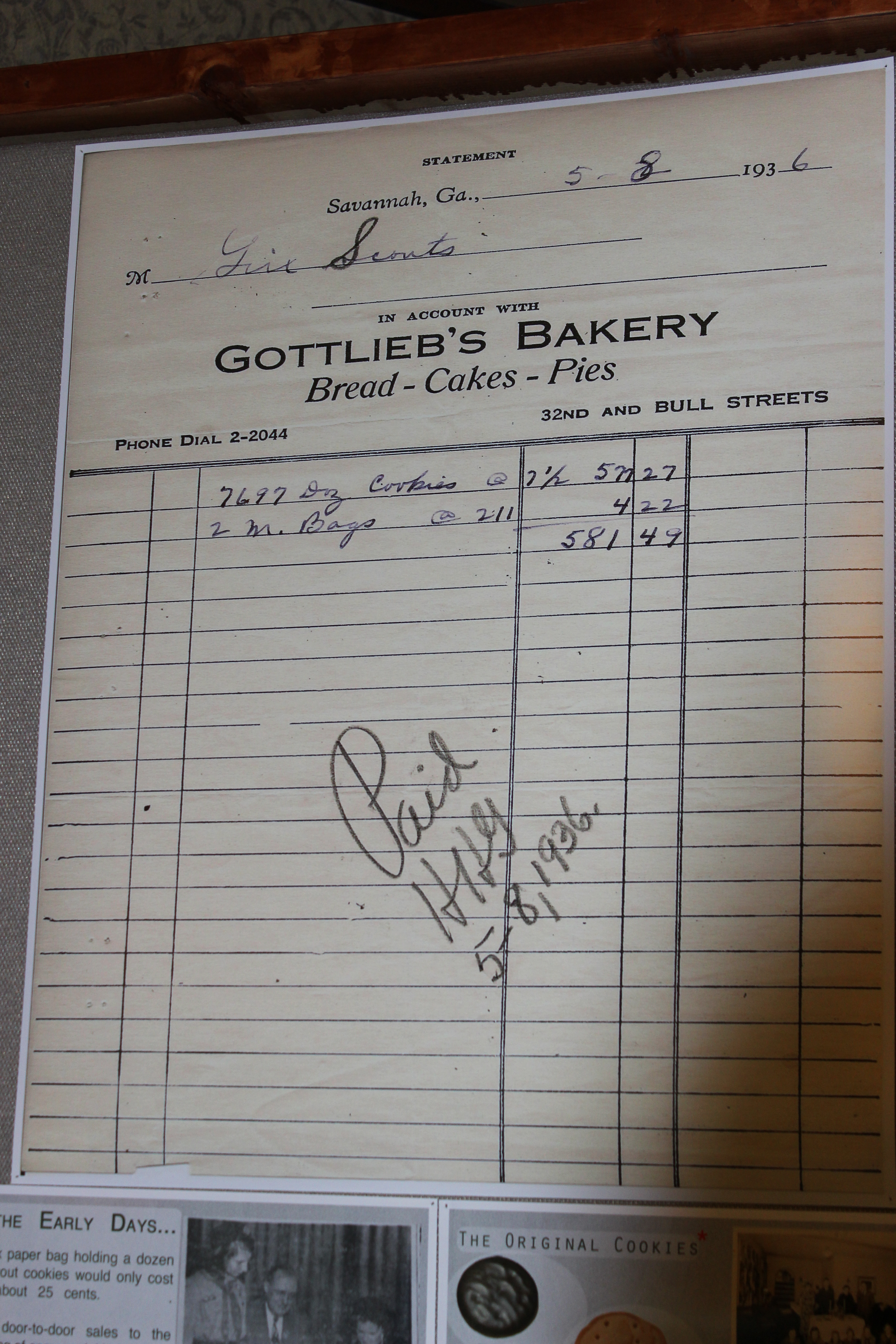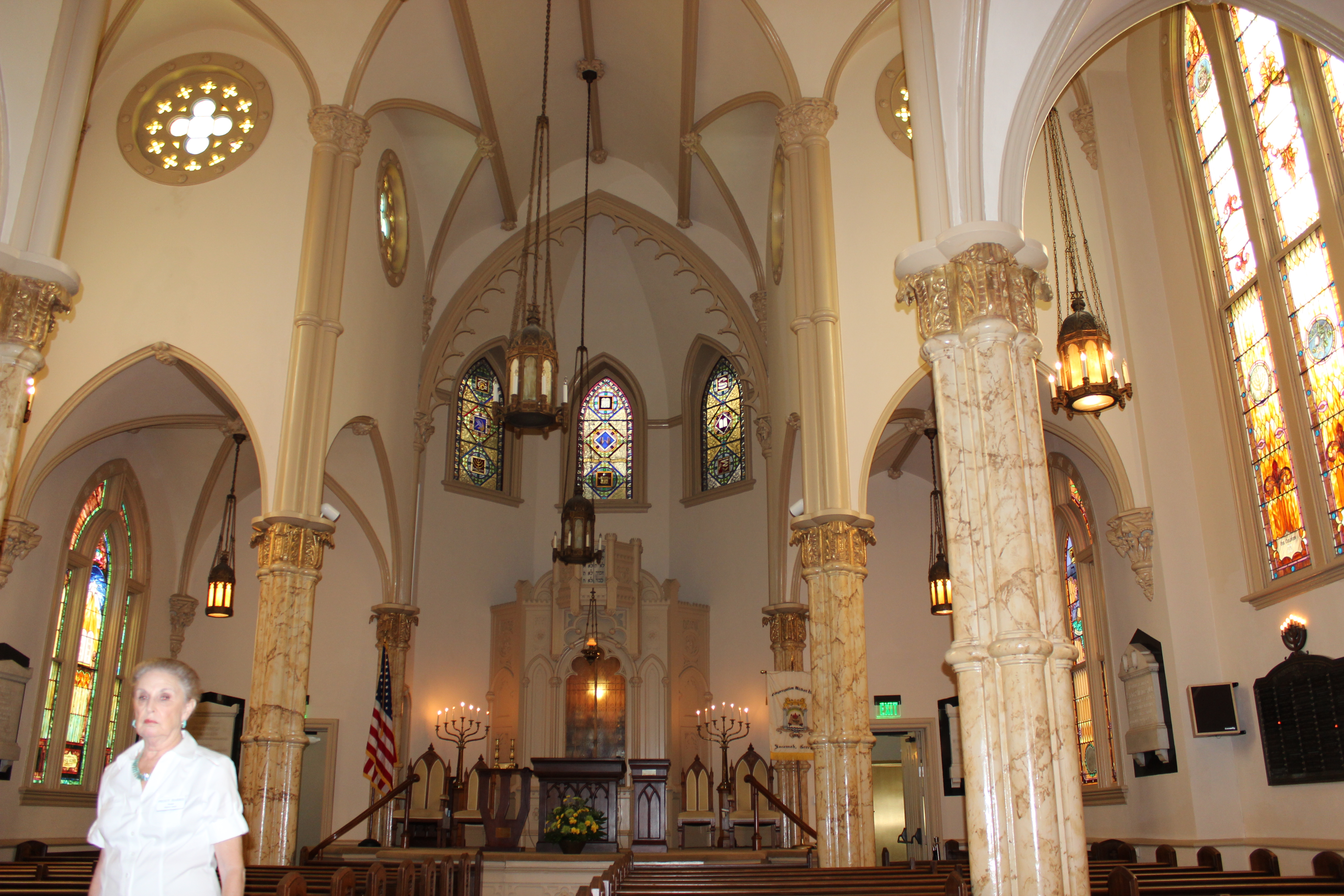 We learned about the architecture (the columns are not actually marble but cast iron painted with a faux marble finish), the congregation’s founders (they were all from London and were mostly Sephardic of Spanish descent with the exception of two Ashkenazi families, until about 15 years later when England and Spain went to war and Spanish Florida threatened to conquer Georgia, sending the Spanish Jews in Georgia fleeing northward to avoid another Inquisition and leaving only Ashkenazim in Savannah), and historic Jewish influence in the area (the first kosher bakery in Savannah was hired to bake the first batch of Girl Scout Cookies–a batch of 92,364 cookies, according to the order form).