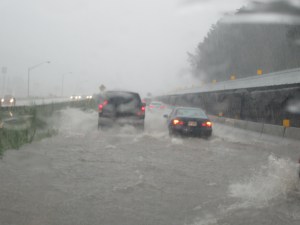 Sam had been watching “The Natural” on our portable DVD player to pass the time, and he had to shut it off because the rain was so loud that he couldn’t hear the movie, even on full volume. We slowed from 75 mph to about 10, and I was nervous going even that fast. And the rain didn’t let up at all for over half an hour. Soon I was less worried about visibility than I was about getting stuck in a newly formed lake on the Interstate.