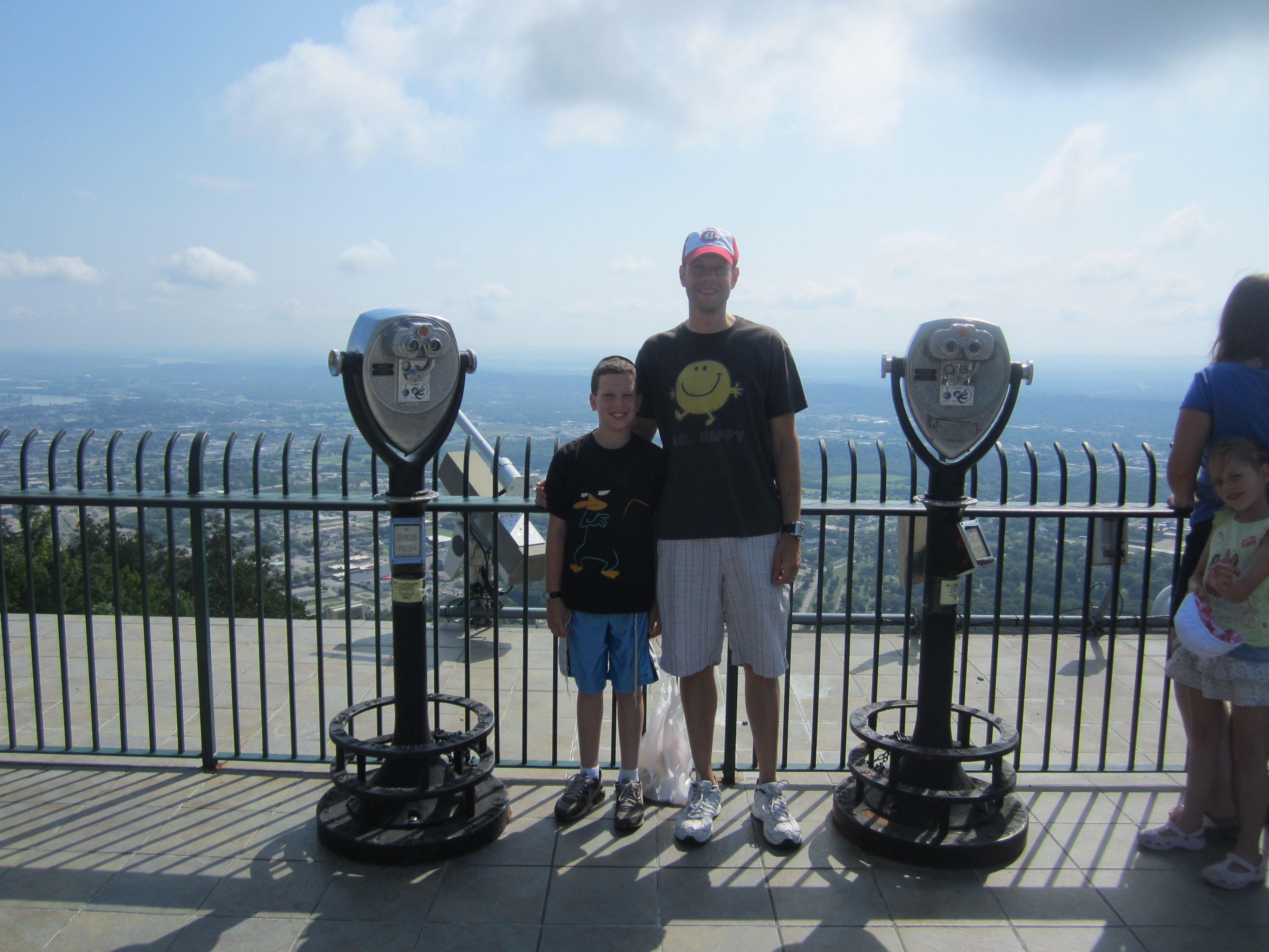 For once the skies were reasonably clear and we enjoyed great views of the Tennessee Valley and the tail end of the Appalachians from the top of the mountain. As we were about to board the tram or whatever it’s called for the ride back down, we saw the most incredible sight yet: a toddler with a mohawk. And did I mention he was wearing an muscle T? If the White Trash Hall of Fame sold postcards, he’d be on ’em.