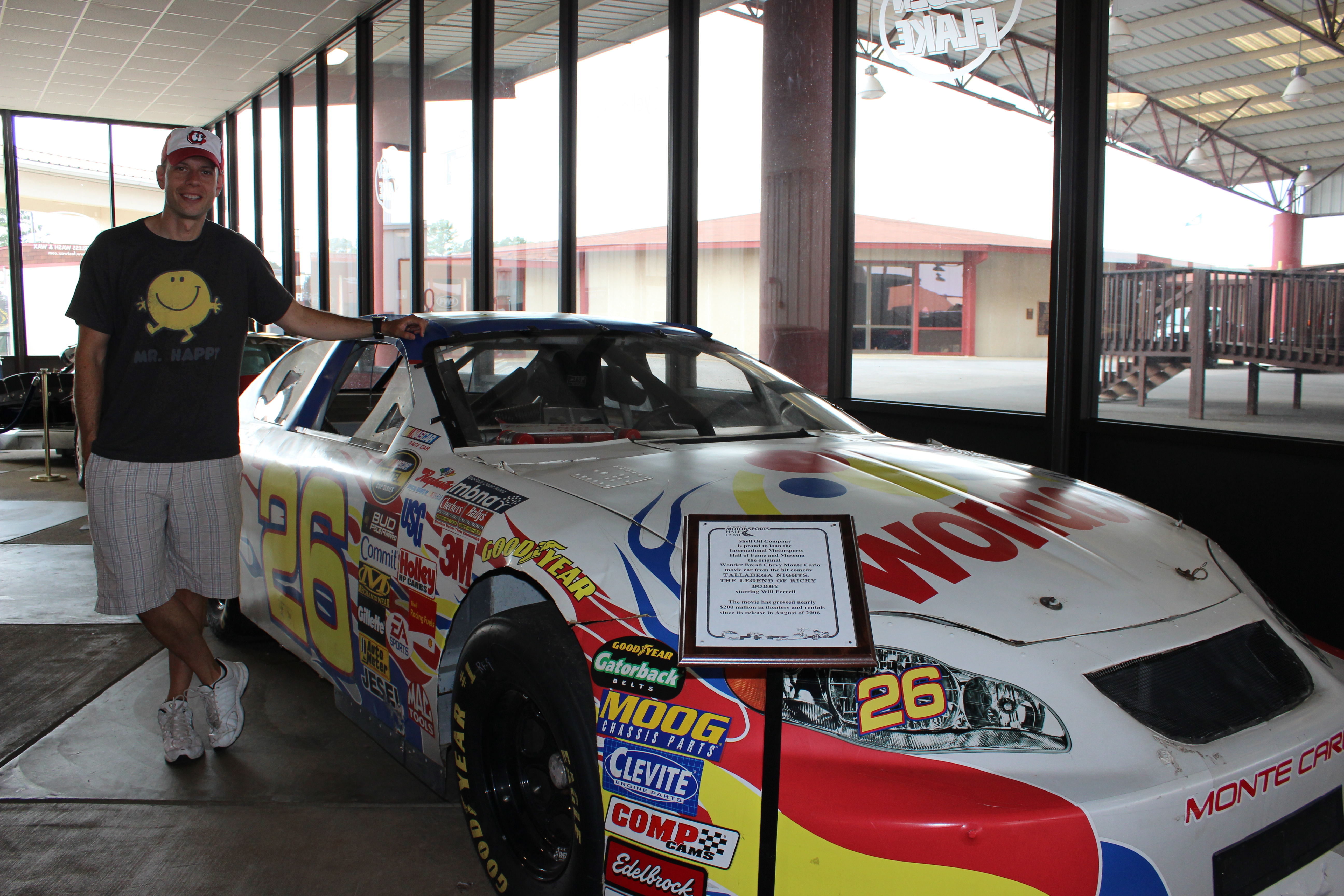 When I say we drove across the finish line, what I mean is that we sat in a handicapped-accessible van while a 70-year old man drove us very slowly across the finish line. But shut up, it still counts. I don’t really know much about NASCAR and the Hamster knows even less than that, but we both had a great time here. Right next door to the track is the International Motor Sports Hall of Fame and Museum, which we also visited. We zipped through the museum because most of the stuff on display meant nothing to us, but we had lots of fun gawking at the more impressive-looking cars on display. And I was excited to see one car in particular: Will Ferrell’s Wonder Bread car from “Talladega Nights.”