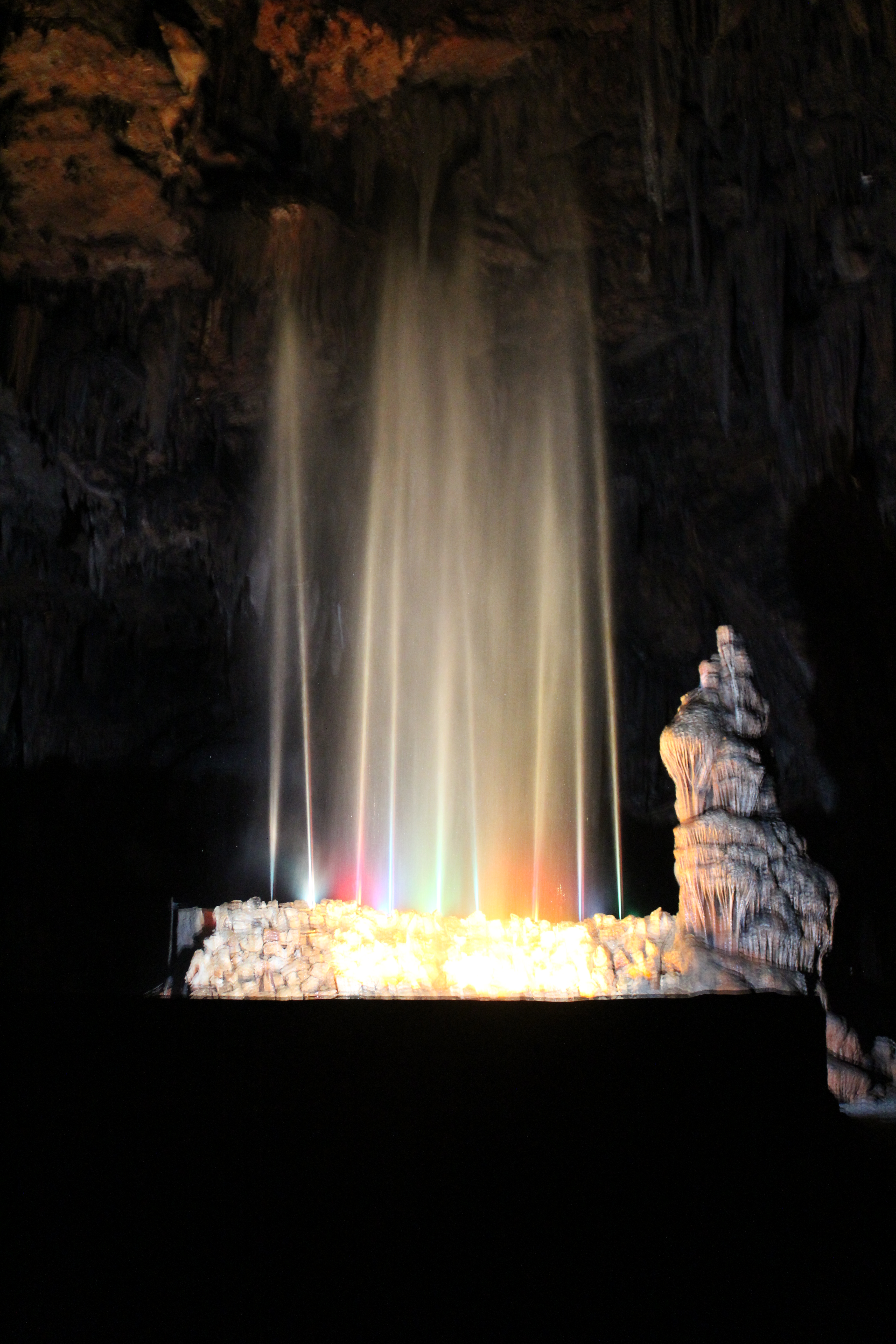 And to top it off, we made it to Desoto Caverns on time, and we had the 4:30 tour all to ourselves. The cave formations were pretty cool, but I particularly enjoyed the story our guide told about how, during Prohibition, the cave had been used as a speakeasy called the Cavern Tavern, but only for six weeks because underground bar fights were so frequent that a local reverend heard about the place and called the cops. Also, about halfway through the tour we noticed a large metal cross hanging from the ceiling; the tour guide explained that the cave’s owner is a religious fanatic and the light show included on every tour is synchronized to prerecorded readings from the bible. I guess he noticed the perplexed/disappointed looks on our faces, because he offered to give us an alternate show that he synchronizes to his favorite Blink 182 song.