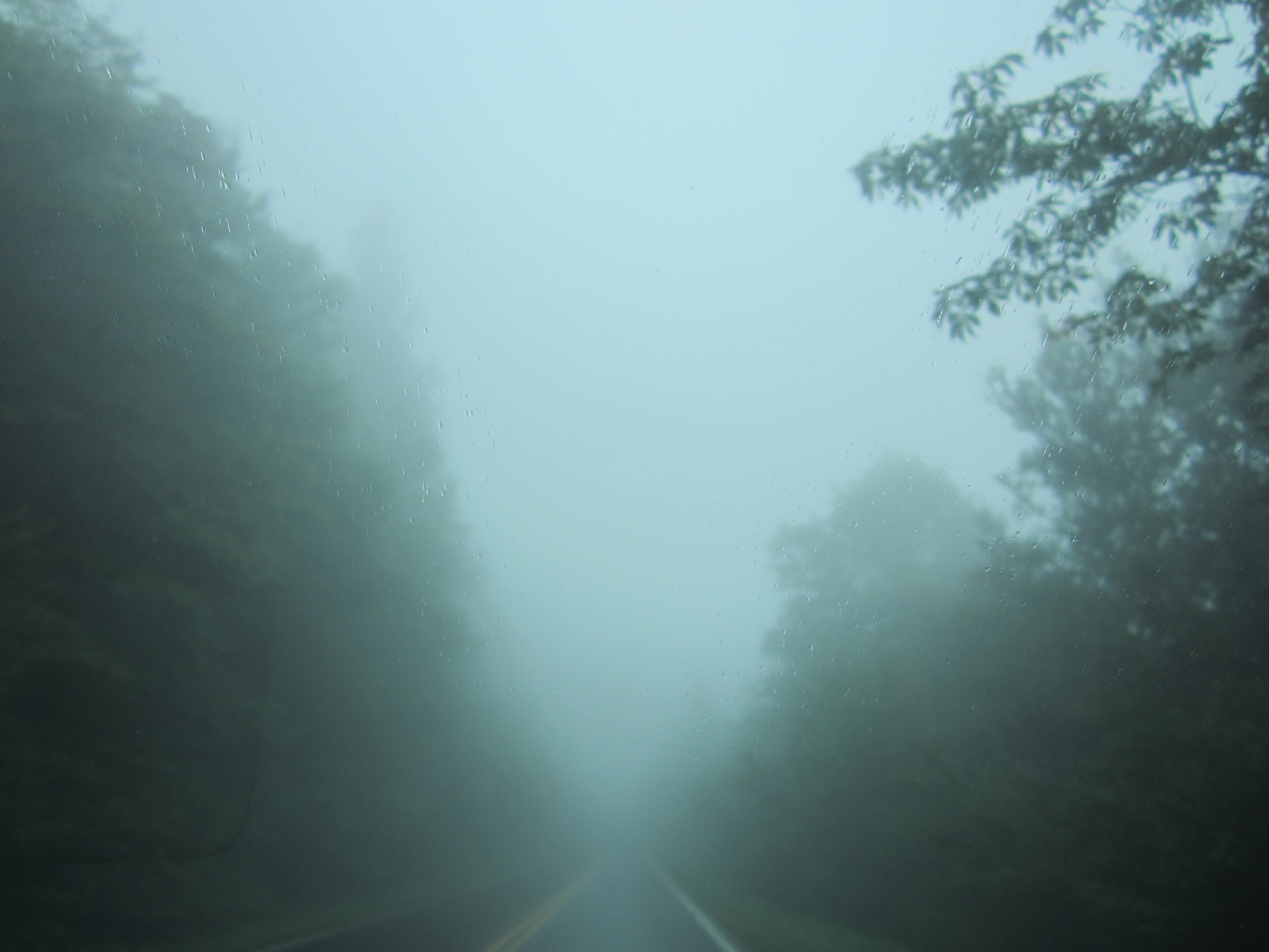 Much more troubling was the fact that, as we gained altitude, those clouds enveloped the road itself. Forget seeing mountain vistas, I couldn’t see more than 30 feet in front of me!