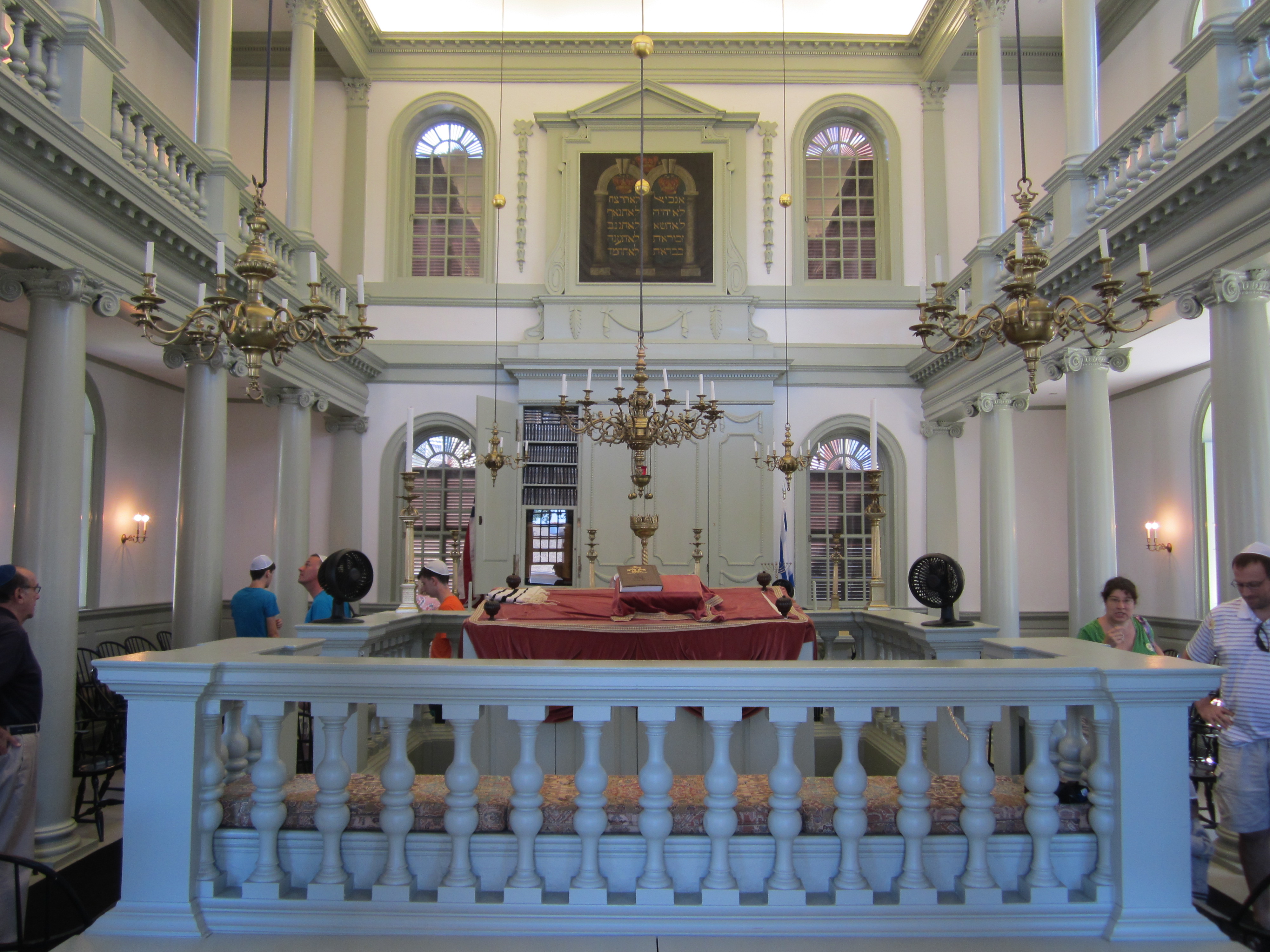 The building is beautiful inside and out, and the congregation (approximately 115 families today) played an important part in our nation’s history. George Washington stopped by when he was passing through the area to promote ratification of the Constitution. Rhode Island was the last state to sign on, due to concerns that the Constitution didn’t specifically separate church and state (a problem remedied by the First Amendment, of course). The shul president expressed similar concerns to Washington, who wrote a now-famous letter in response that is one of the earliest and one of the clearest pieces of evidence that our Founding Fathers built this country in part on the idea of religious freedom. I had read the letter years ago, but seeing it in Washington’s handwriting and in the very building to which it was addressed added layers of meaning, especially while hearing about the synagogue’s having been founded by Spanish Jews who had relocated after fleeing the Inquisition.