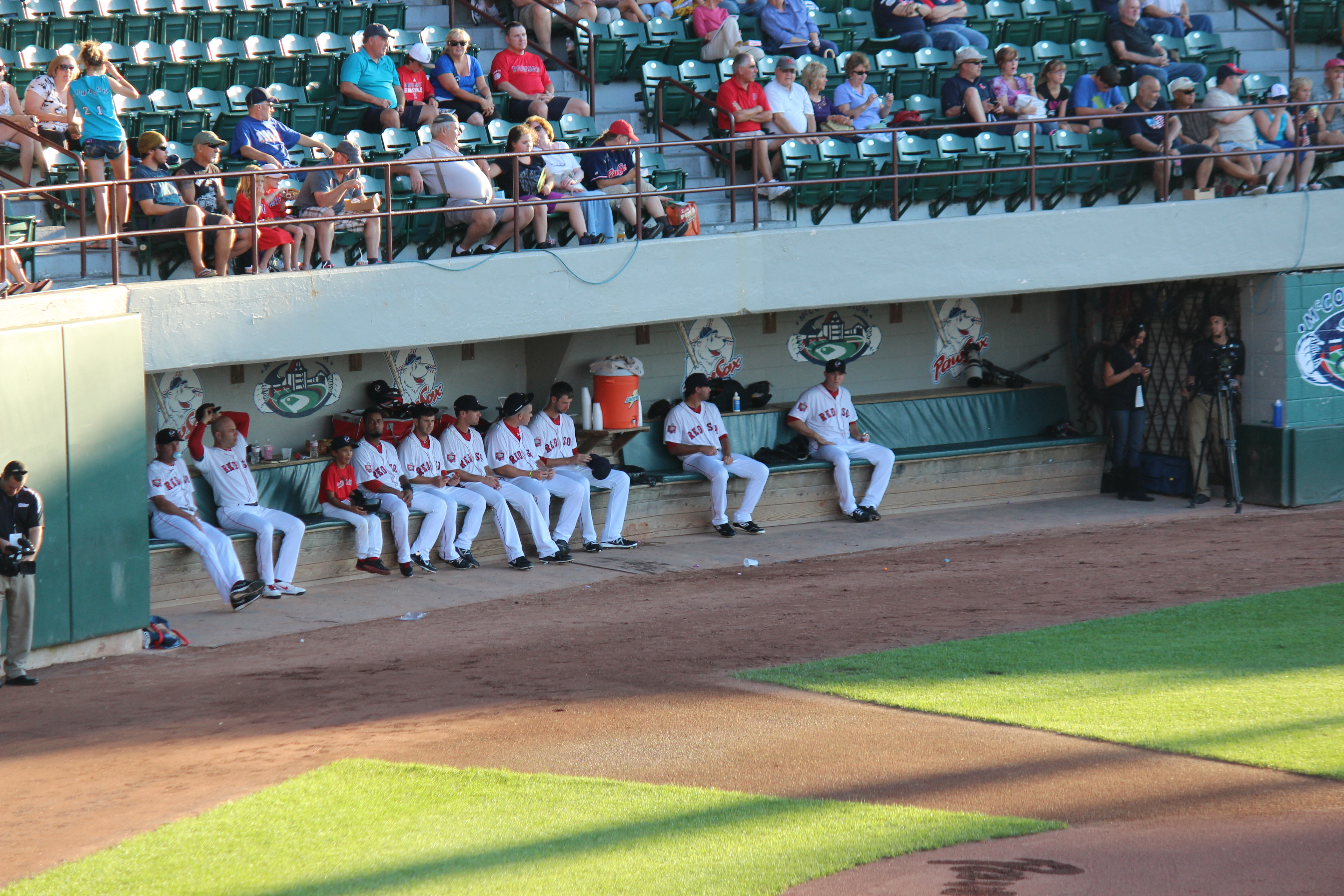 McCoy Stadium is probably most famous for hosting the longest game in the history of professional baseball, a 33-inning affair that was eventually won by the Paw Sox (as they’re affectionately called) a full day after it began. What the Hamster and I found most interesting about the place, though, was that the dugouts are not actually dug out. They’re at ground level, and then the fans sit a whole level above.