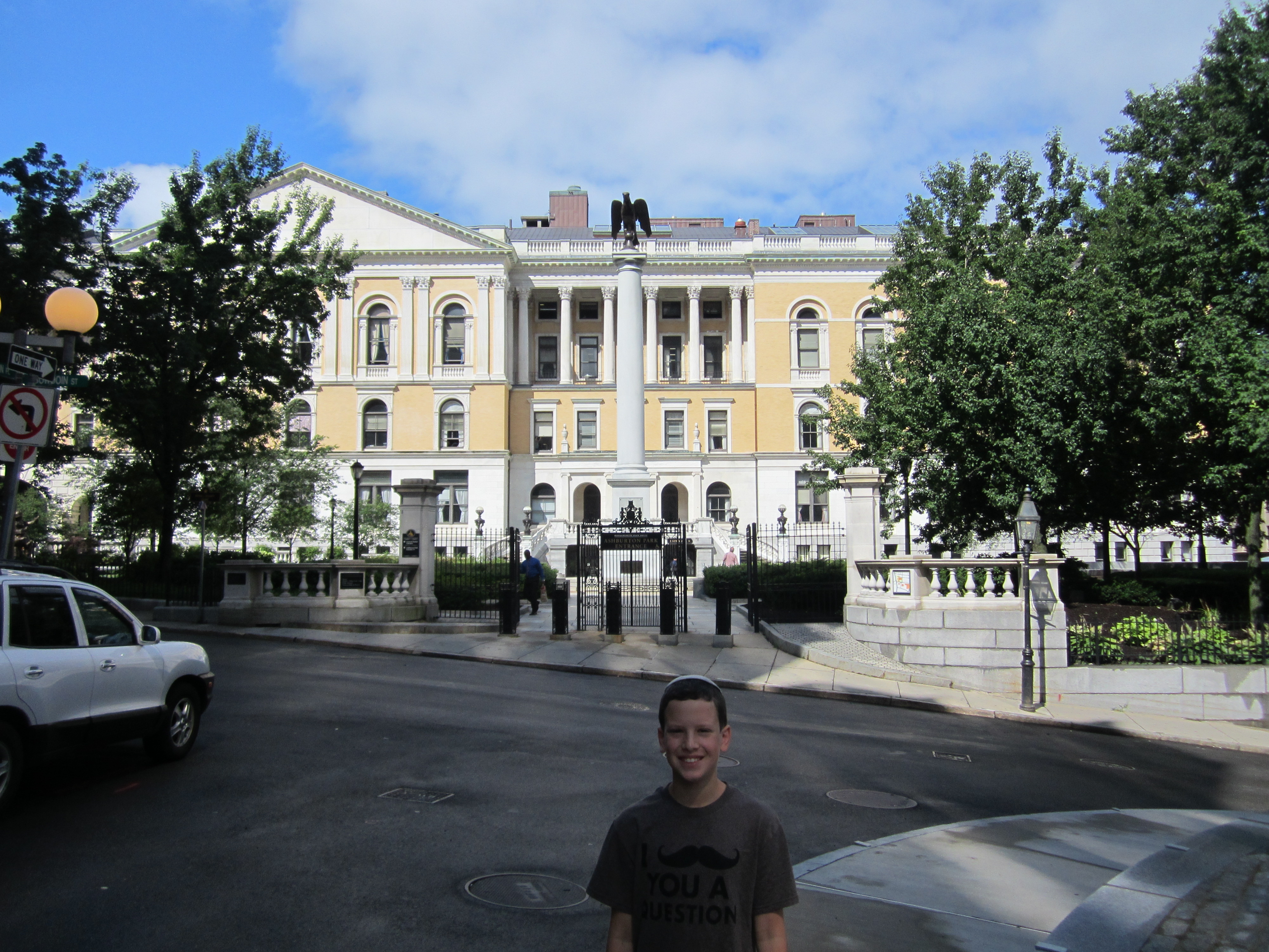 We got an early start Friday because we had a lot to do and we had only until sunset to do it all. Our first stop was a very brief one at the state capitol, the 15th state capitol that the Hamster and I have visited. They generally all look pretty much the same: marble or some other type of stone, lots of columns, big dome on top. Boston’s looks a bit different in that it’s yellow. And the big dome is not visible from the rear of the building, which is the side we saw first. Sam said this made the building look more like a mansion than a state house, and I have to agree.