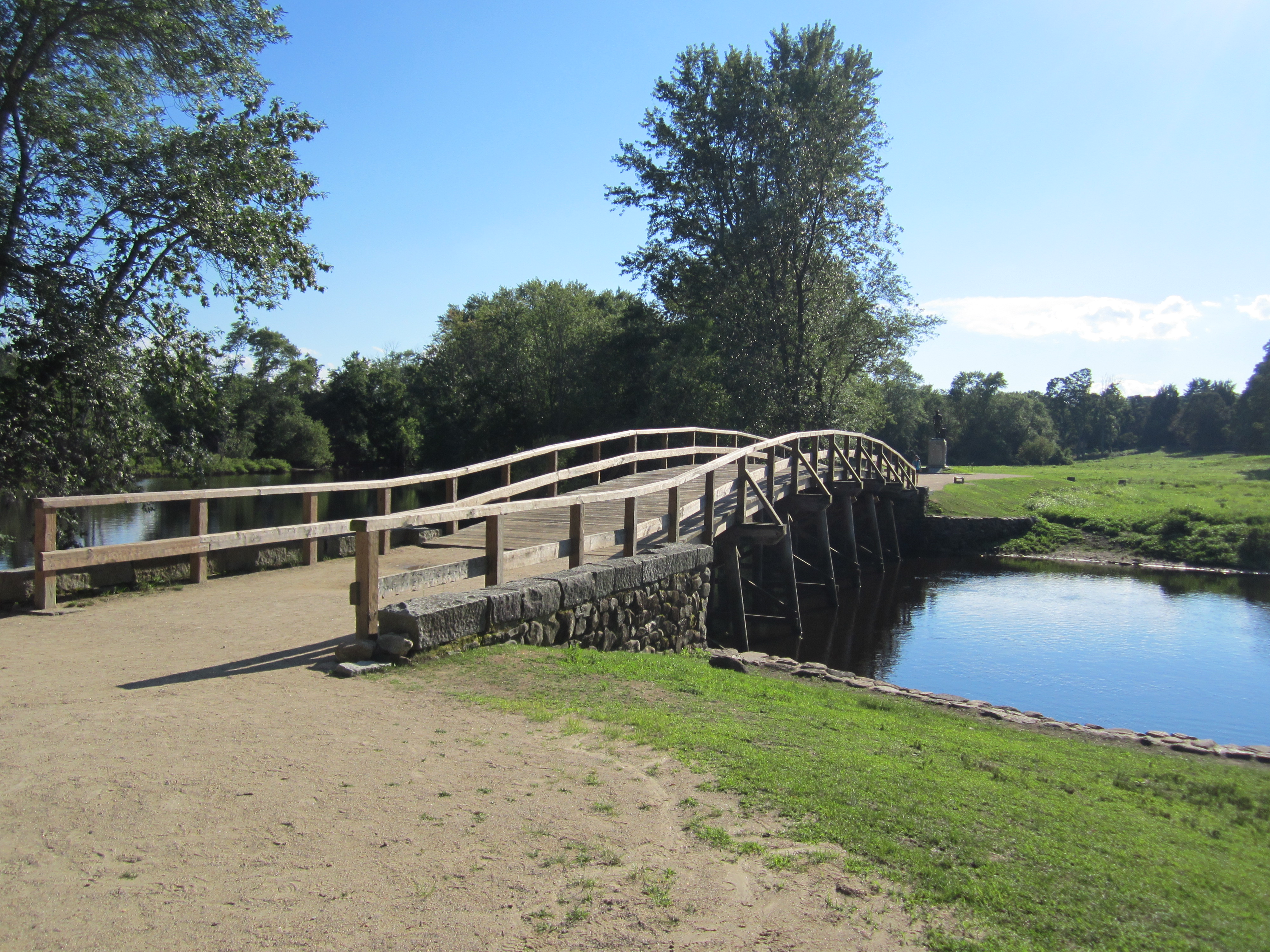 We enjoyed Harvard but we were ready for some real history, so we headed out to Concord to Minute Man National Historic Park, which commemorates the battles in Lexington and in Concord that started the American Revolution. The final battle that day stretched across 16 miles as colonial militias essentially chased British troops back out to sea; the park encompasses four miles of that battle road and several original buildings that survive from that time. In the main visitor’s center we watched a 30-minute multimedia movie about the day’s events, which included Paul Revere’s midnight ride (which was actually made by Revere and two other, less famous, guys named Dawes and Prescott). The movie was really helpful in giving Sam background and context so he could really appreciate the significance of everything we were seeing. From there we stopped at one of the original buildings, where we chatted with park rangers in colonial garb, and we finished at the North Bridge, a cute wooden bridge over a very calm river that looks so serene and peaceful that you’d never guess it’s the spot where the first order was given for colonists to fire on British troops.
