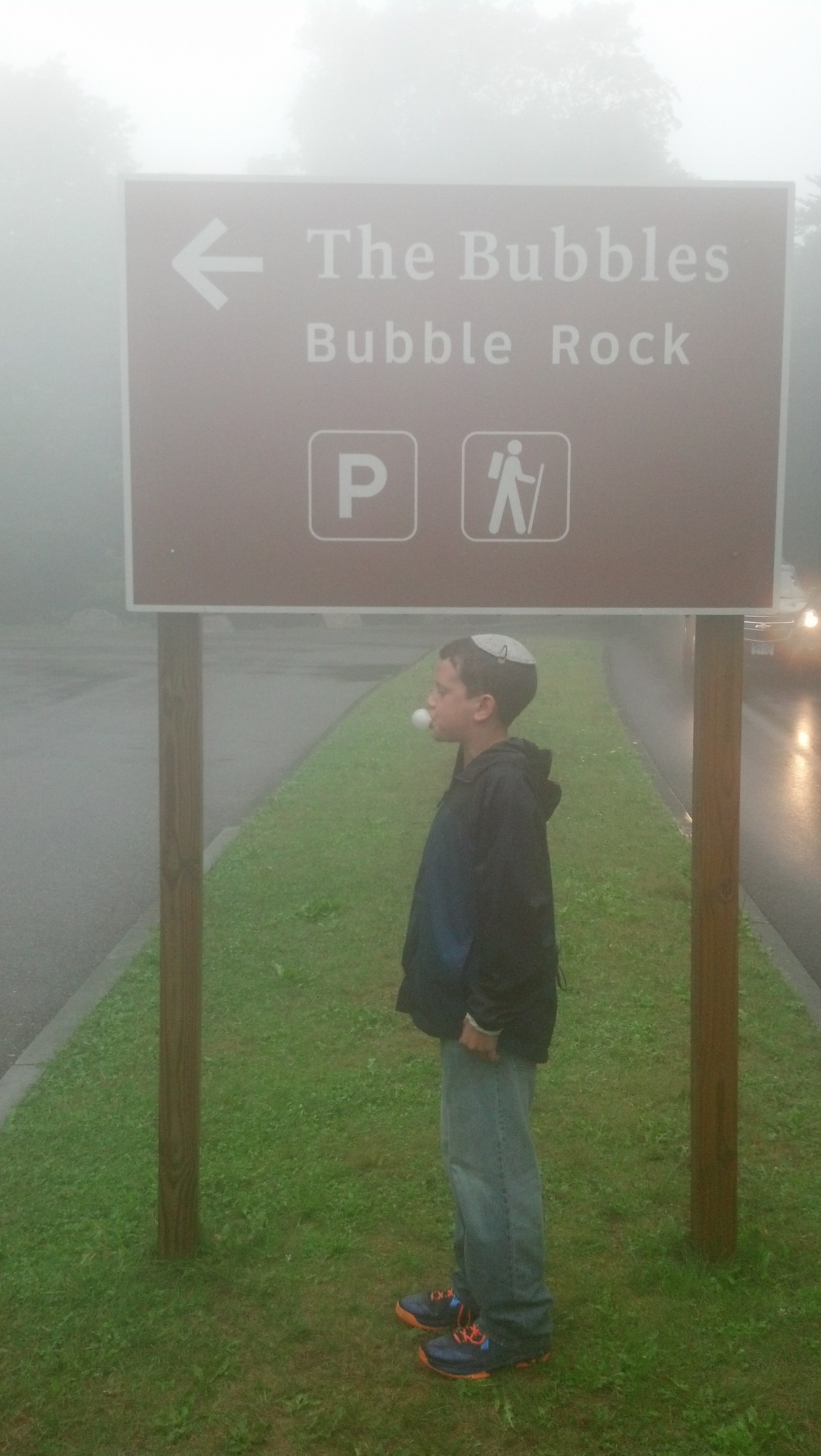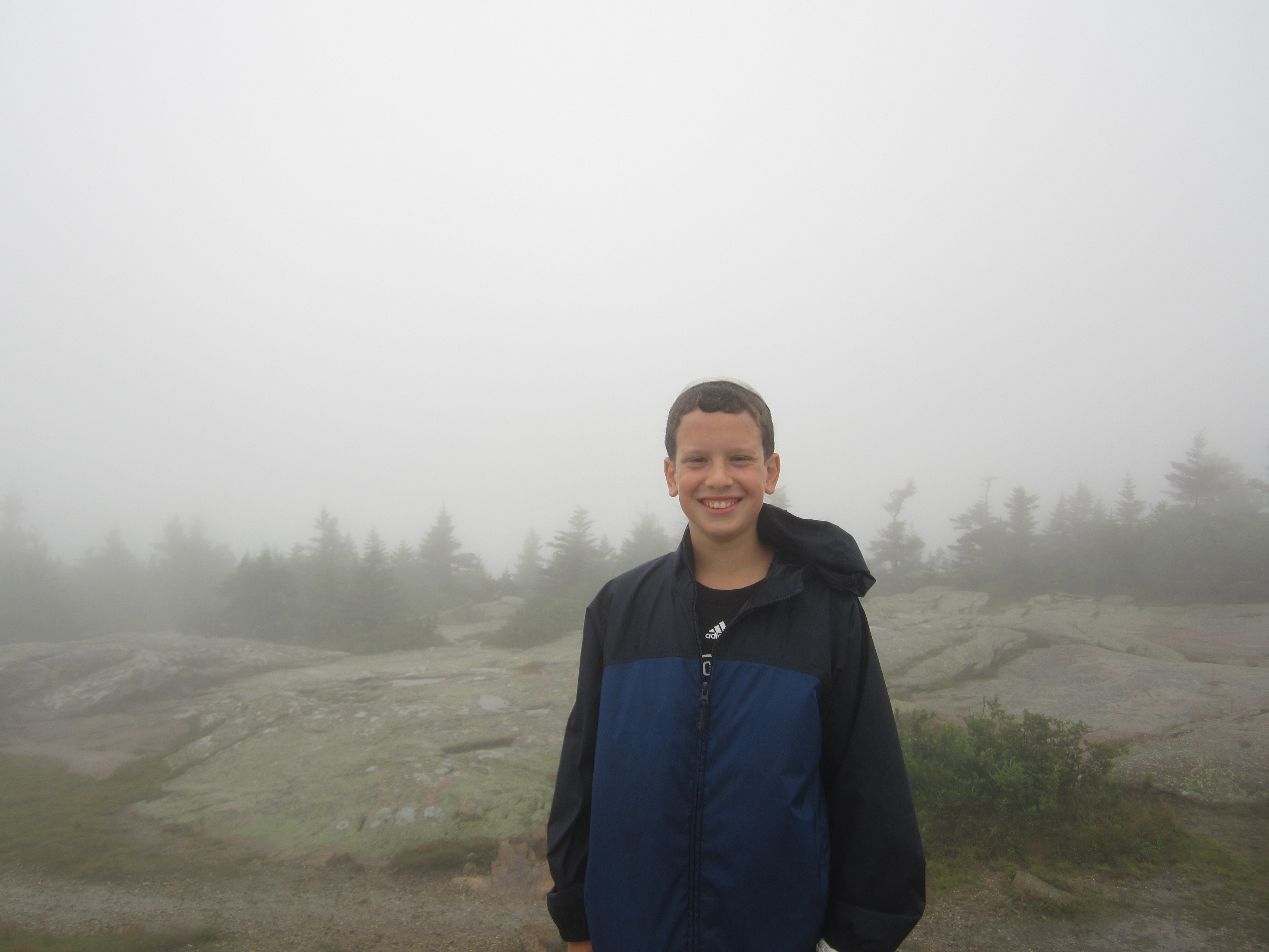 Finally it was time for the grand finale, a drive to the top of Mt. Cadillac. It’s pretty small for a mountain (1,530 ft) but it’s the tallest peak on the island and the summit offers breathtaking views 360-degree views of the whole park and beyond. Or so we’re told. We’ll have to take everybody’s word for it. Here’s Sam at the summit: