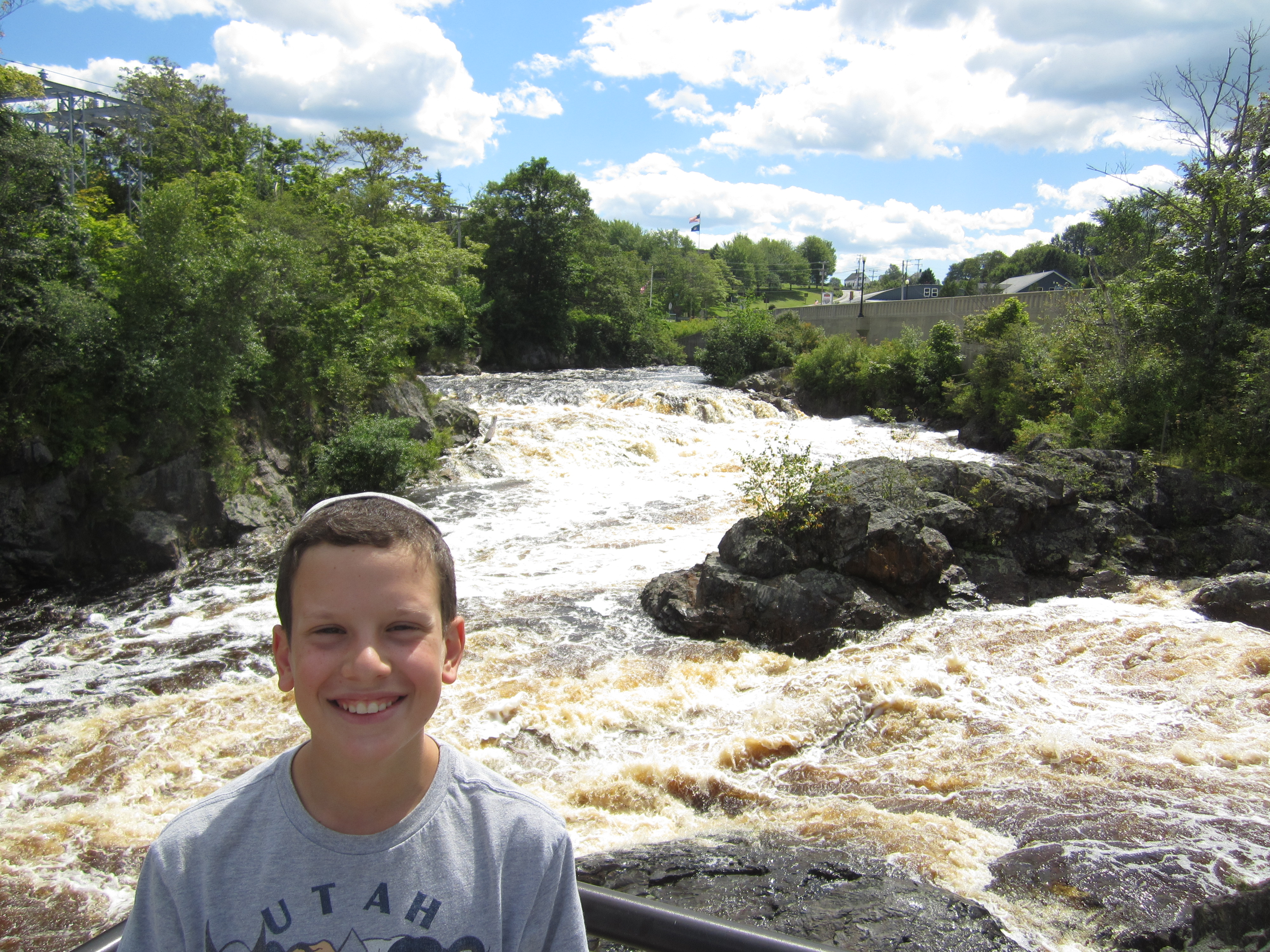 The town of Machias, Maine, is known for two things: blueberry barrens and a handful of waterfalls that gave the town its name. Native Americans named the place Machias after the Machias Falls, which translates to “Bad Little Falls.” We may not have stopped off to see the falls except that they are literally directly under the highway. We immediately understood where the name came from. The falls are not tall but they’re powerful; the water doesn’t fall over the edge, it gushes and jumps and smashes over the edge. It was also oddly colored, especially since upstream the water was blue and several yards after the falls the water calmed and returned to blue. But in its rage over the falls it was brown–Sam said it looked like a Coke waterfall.