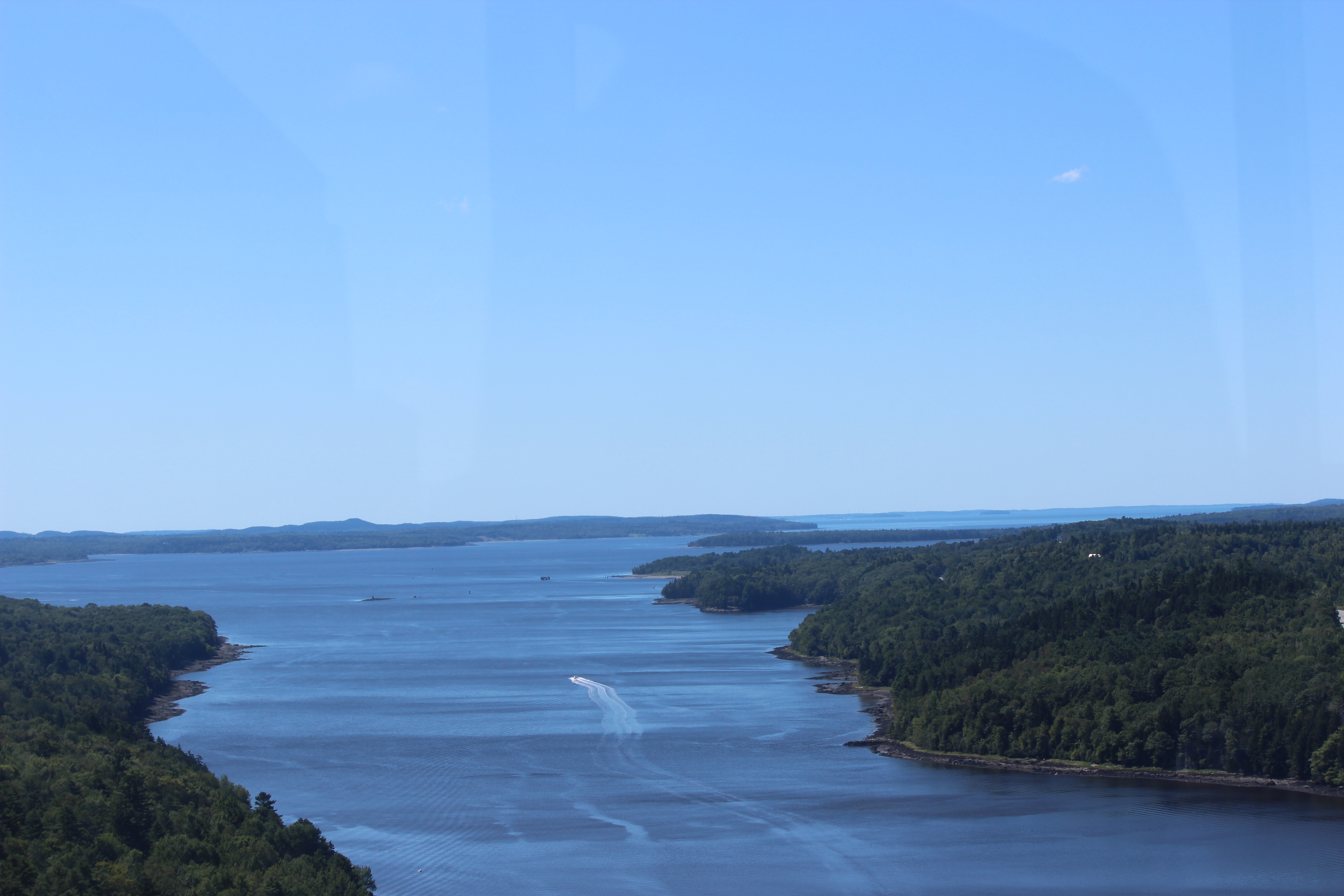 And, with Friday’s terrible weather completely forgotten, the sky was beautifully clear, allowing us to see for miles in every direction. There were some cool views–watching boats snake down the Penobscot, looking down onto the bridge itself, looking out over neighboring (and ugly) Bucksport all the way to Bangor–but I think my favorite view was this one: