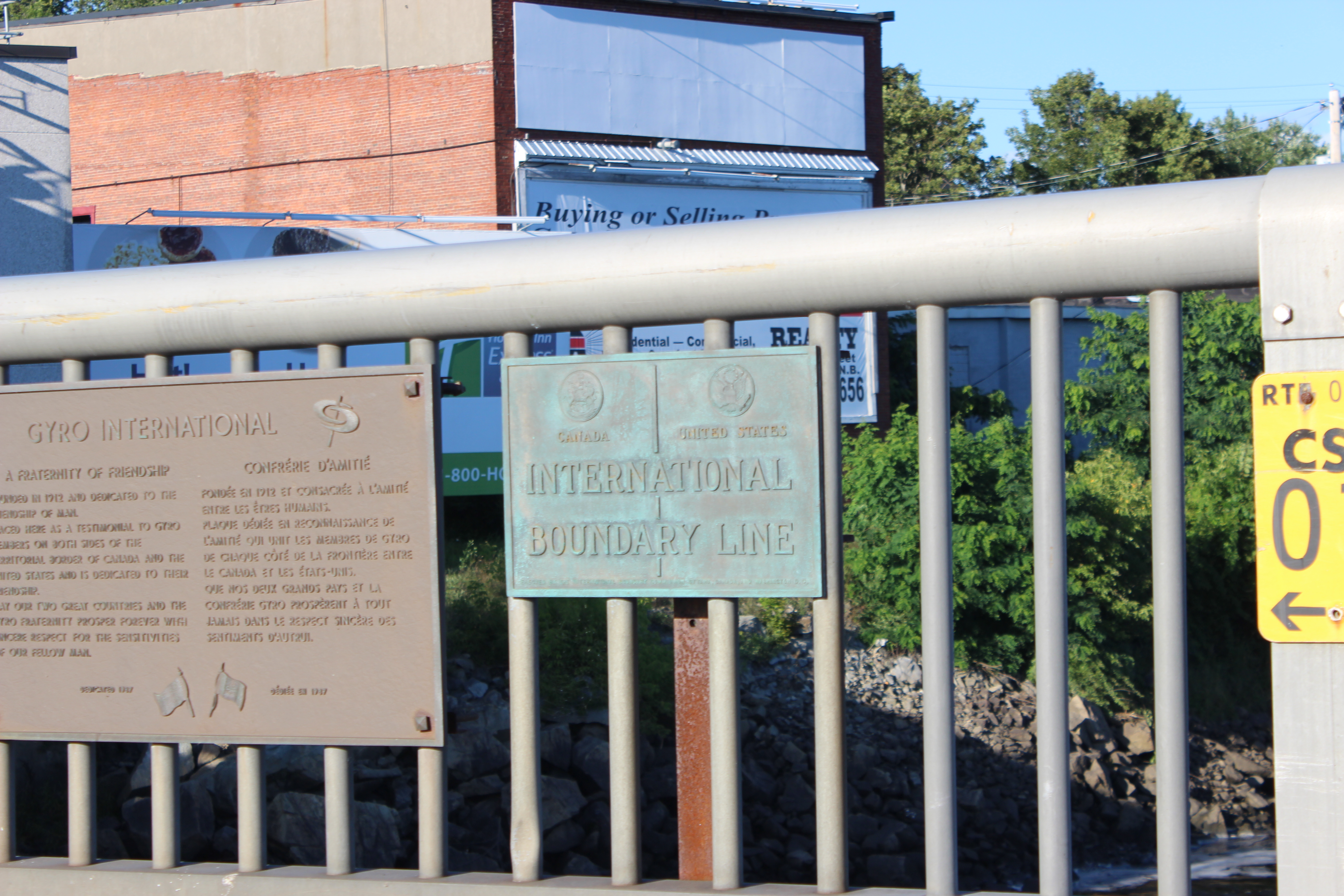 The sign in the photo is actually outside a gift shop called the 45th Parallel. The official U.S. Geological marker is a few yards up the street, and we took pictures there too, but it’s pretty dull, especially compared to this one.
