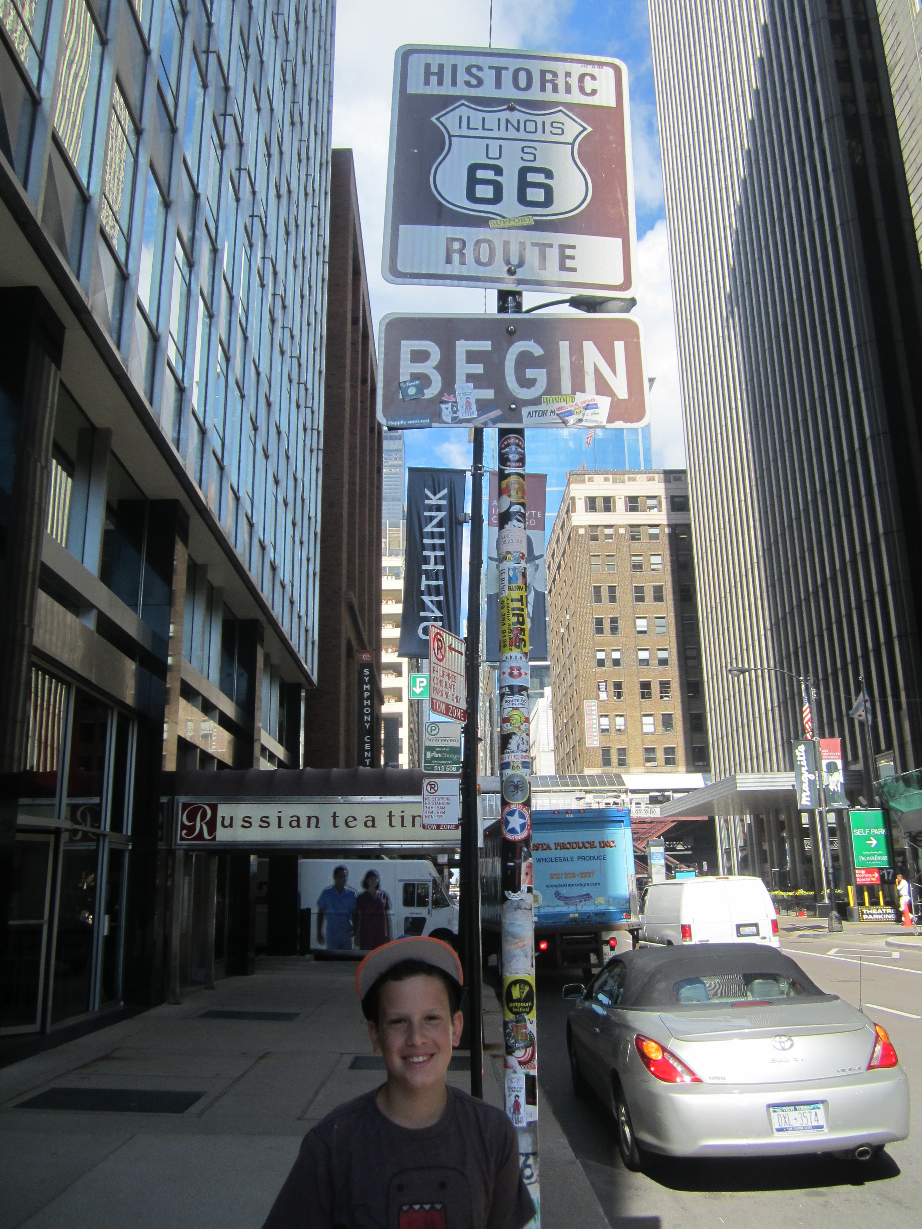 We started early this morning at ground zero—a street sign in downtown Chicago that marks the beginning of Route 66.