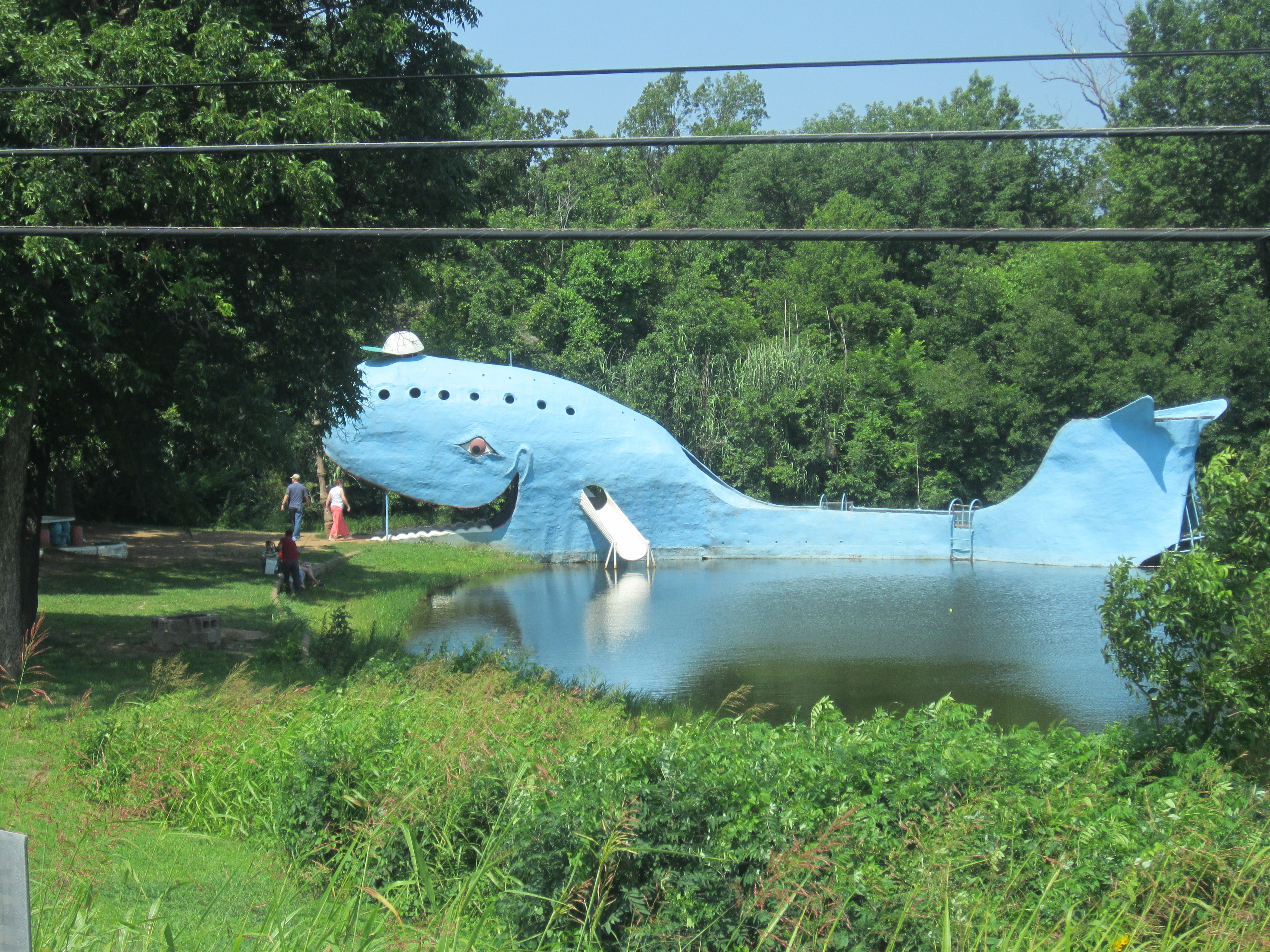 And a few miles later, an enormous blue whale floating on a pond with a water slide coming out of its body: