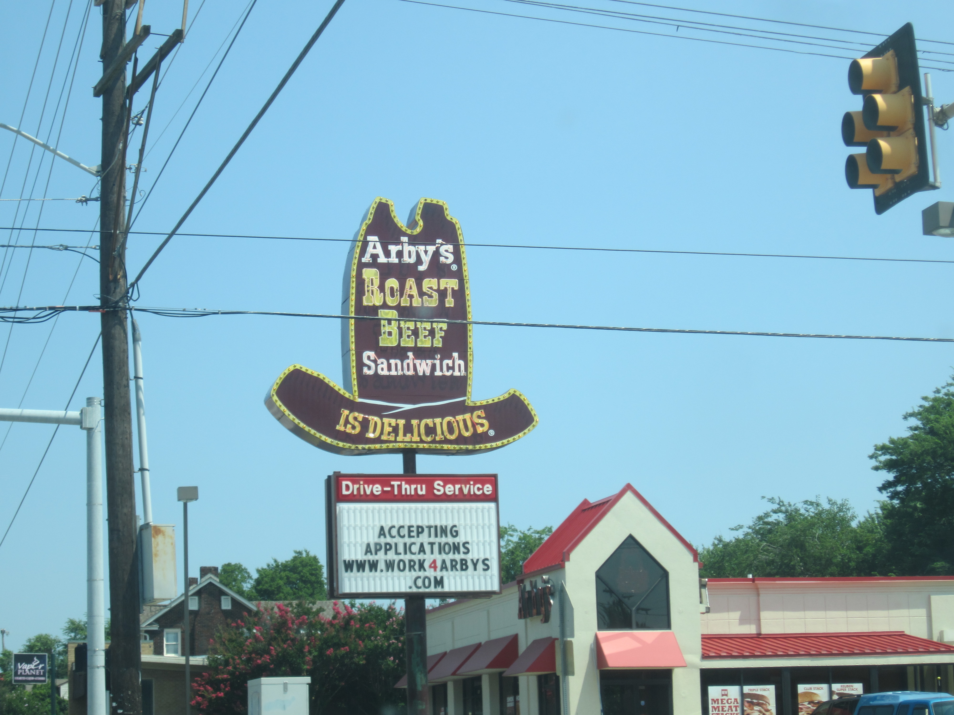 First let me say that Tulsa is lovely. The river’s edge has been turned into beautiful parks and bike paths, which are then bordered by either quaint neighborhoods or quaint shopping districts. The skyline is attractive if not especially interesting, the city is easy to navigate, and there are several major Interstates running through the city in addition to Route 66. Many of the shops and restaurants have cute names (ex: Purple Glaze Pottery), and all of the many Arby’s restaurants scattered around town still feature the old-old-old-school Arby’s hat neon sign.