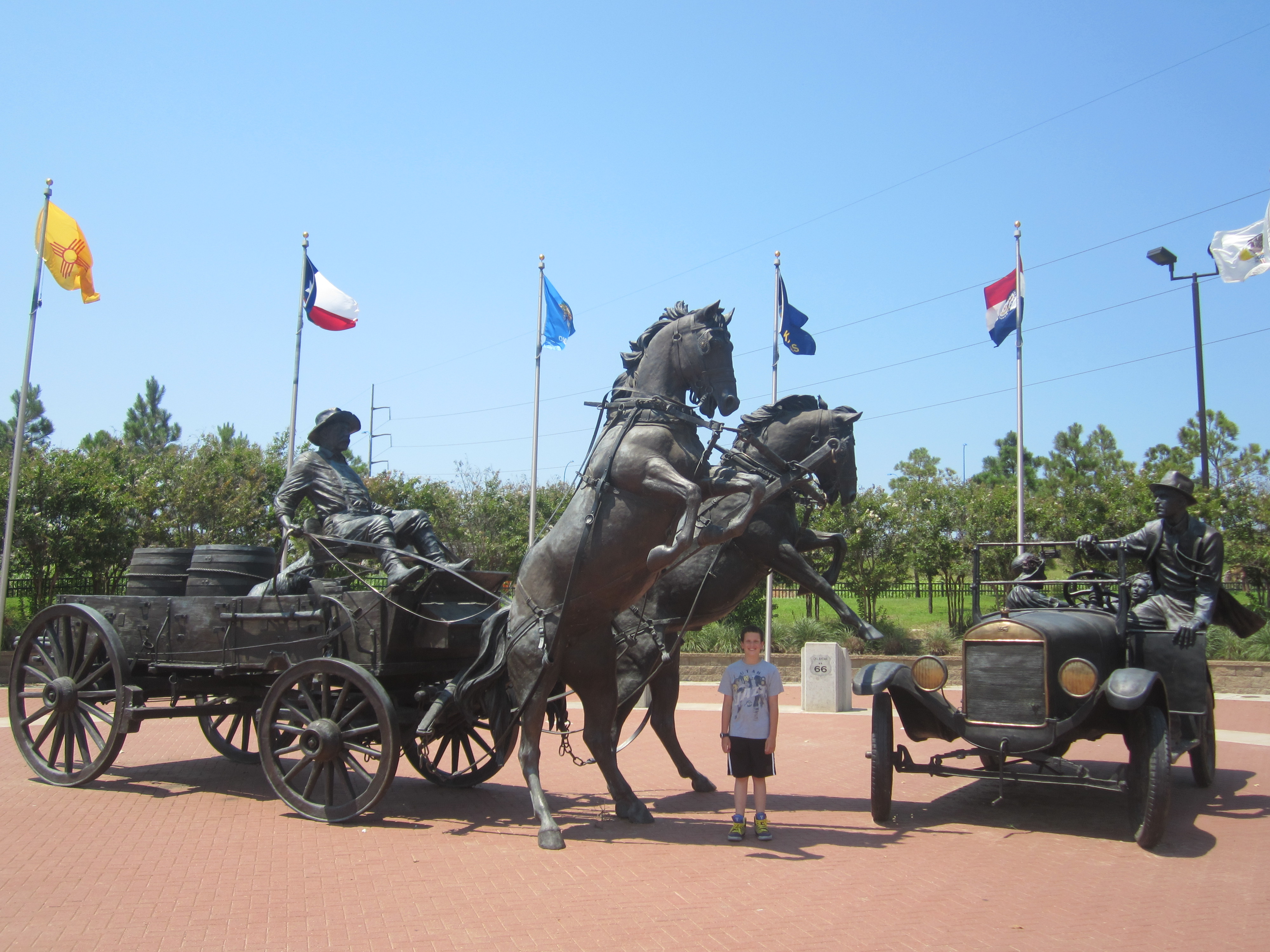 The city calls itself the place where East meets West, meaning that Tulsa is really marks the beginning of cowboy country and is the first time on Route 66 where there’s a palpably different feel to match a palpably different landscape. There’s even a cool statue dedicated to this concept, showing a near-collision between a family in a Model T and a cowboy in a horse-drawn wagon.
