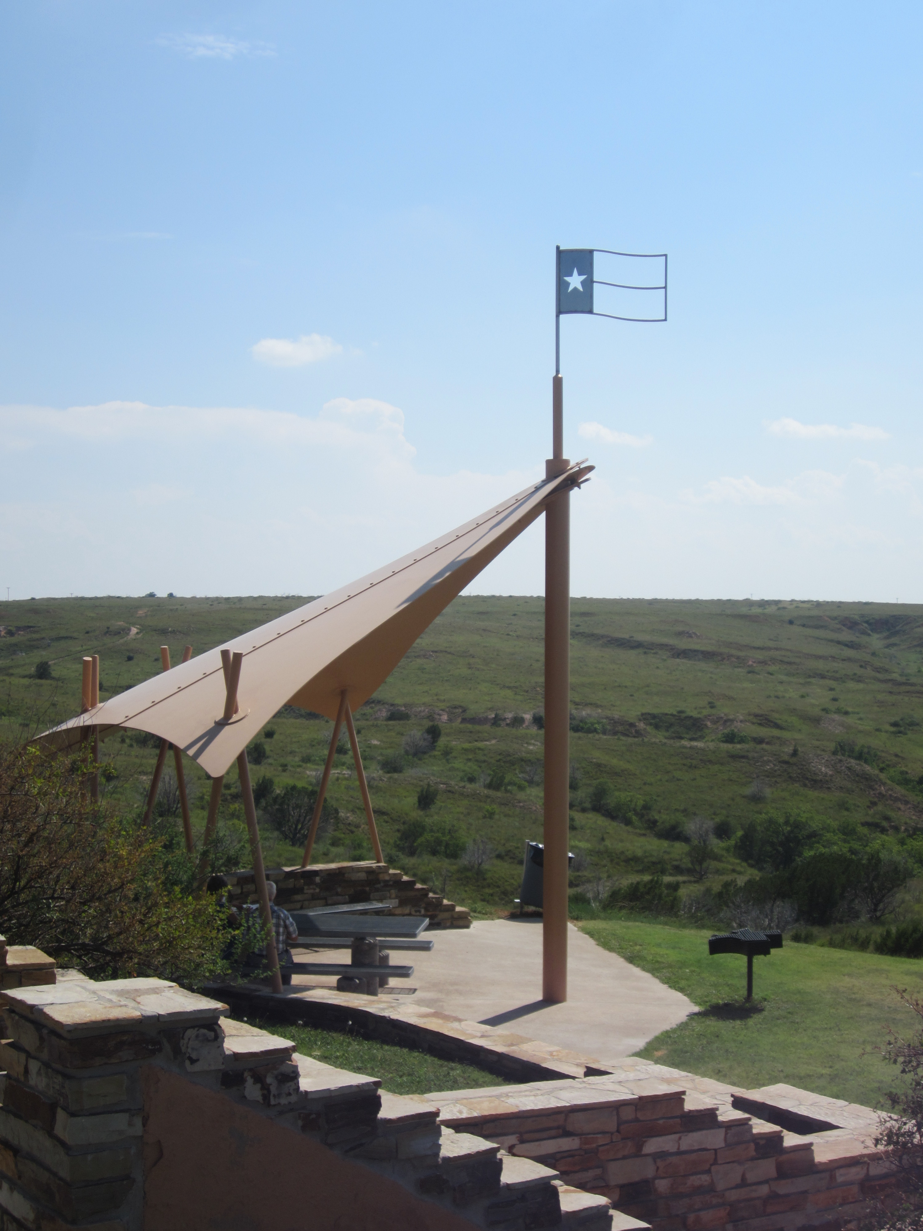 Then there were the picnic tables, which were each sheltered from the oppressive sun with a half-tepee topped with the state flag.