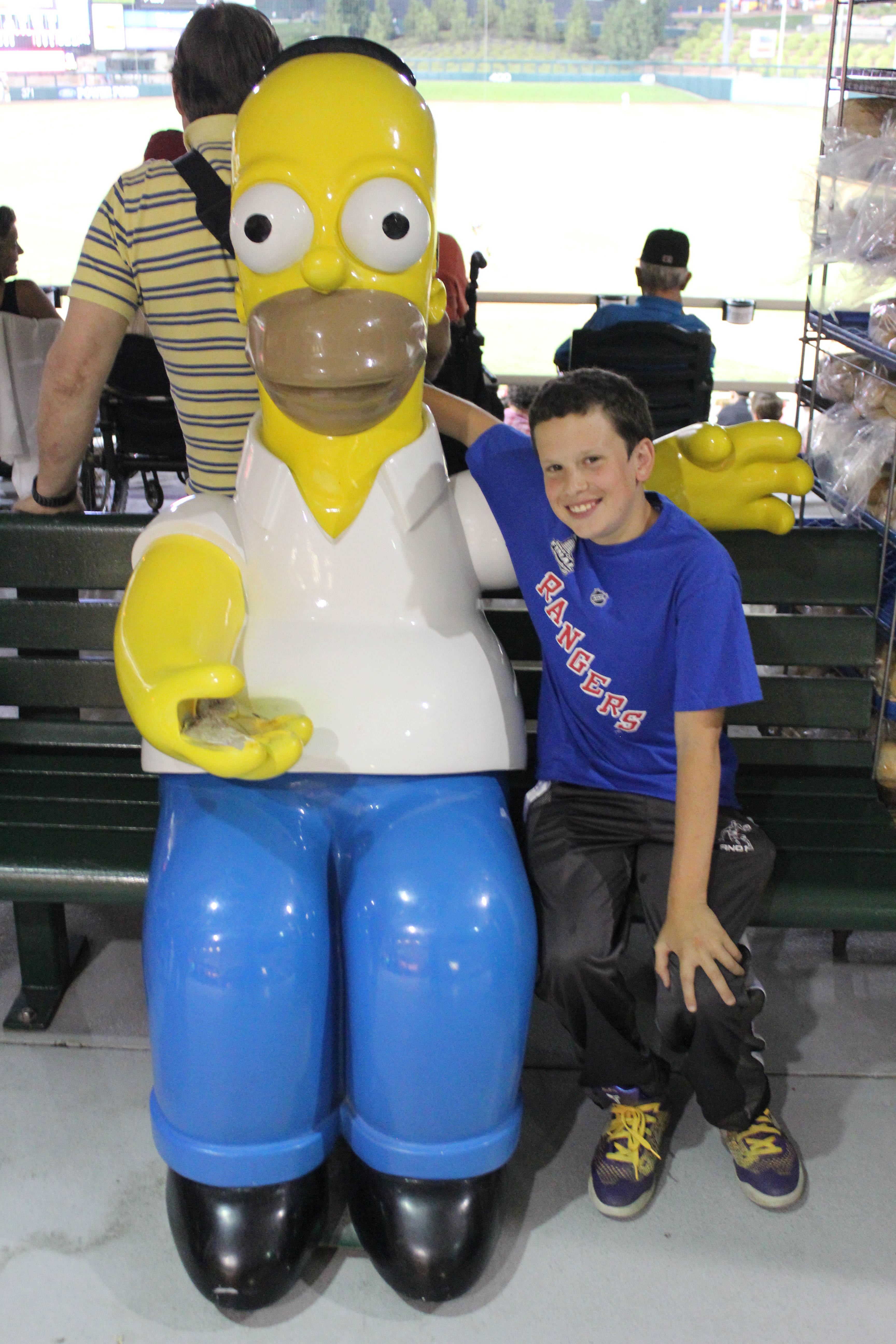 Meanwhile the game turned out great. The weather was fantastic. Both teams featured former major leaguers we knew: Chone Figgins and Mike Baxter on the Isotopes and Dan Uggla on the visiting Fresno Grizzlies. The ballpark was friendly and comfortable and even had life-sized statues of Simpsons characters scattered around the main concourse.
