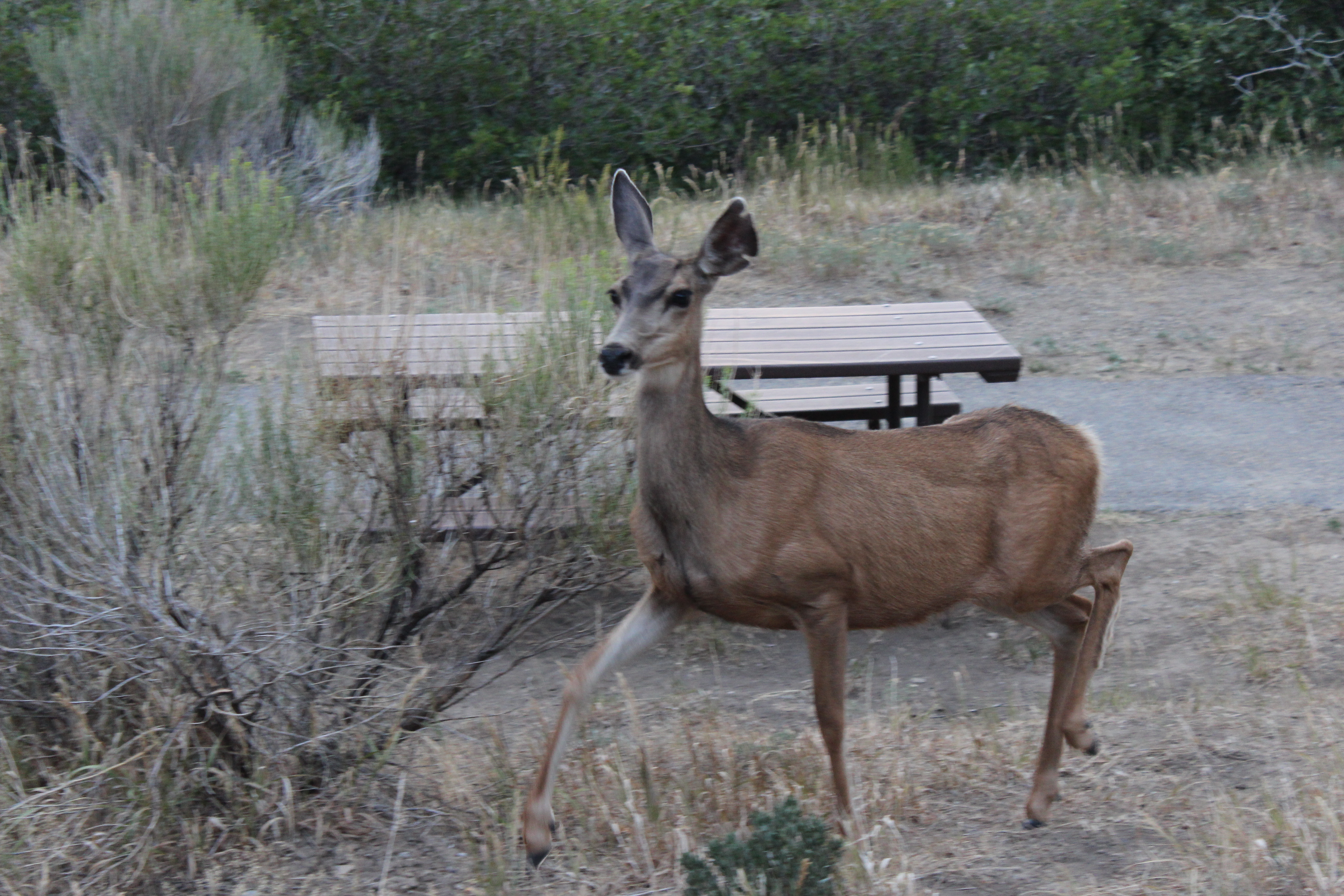 For me, the best part of the whole day might have been dinner. Sam chose a picnic area in the park that had fantastic views and turned out to be completely empty except for us and a curious young deer who came right up to us for a minute or so while our burgers were cooking.
