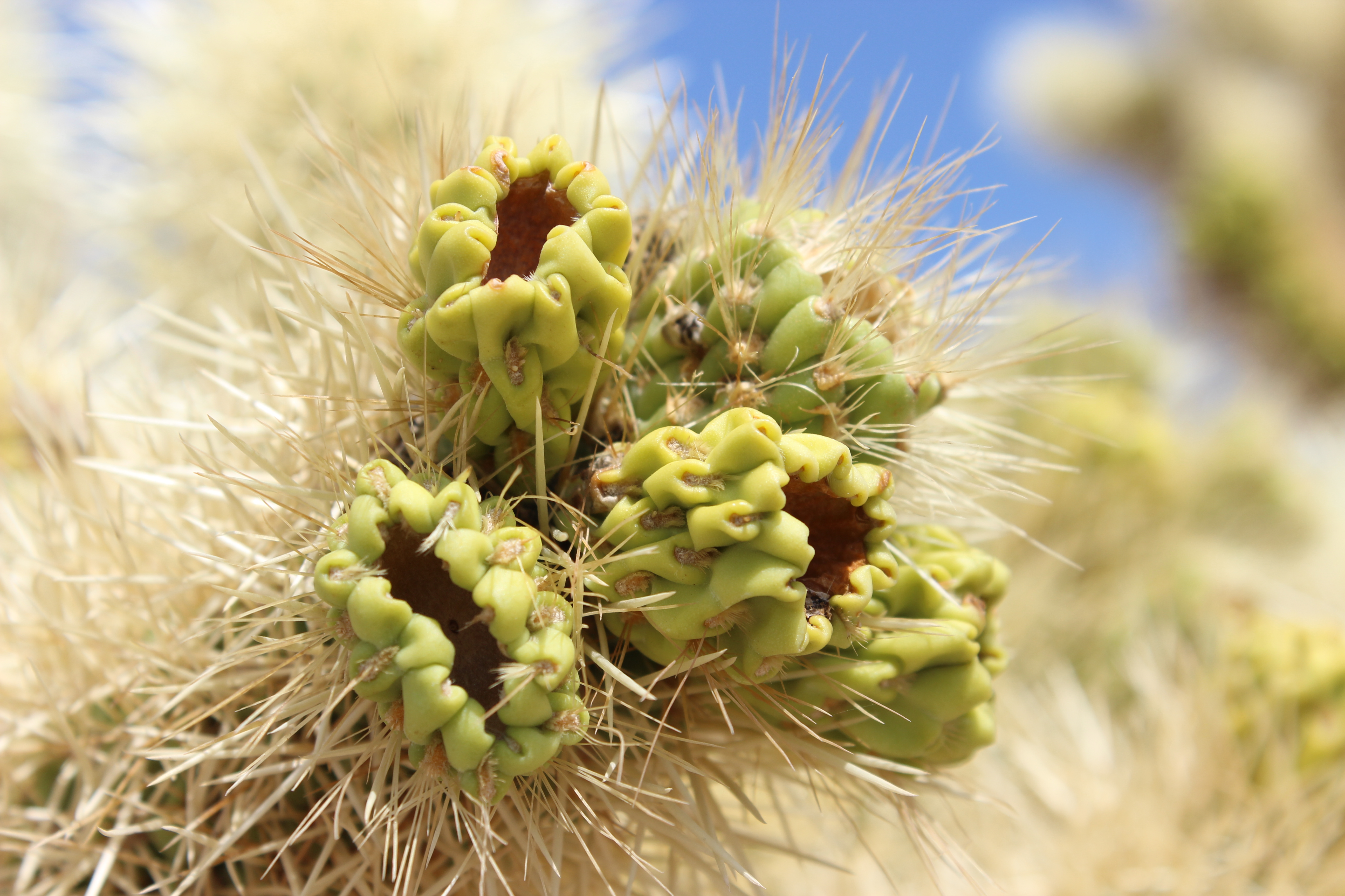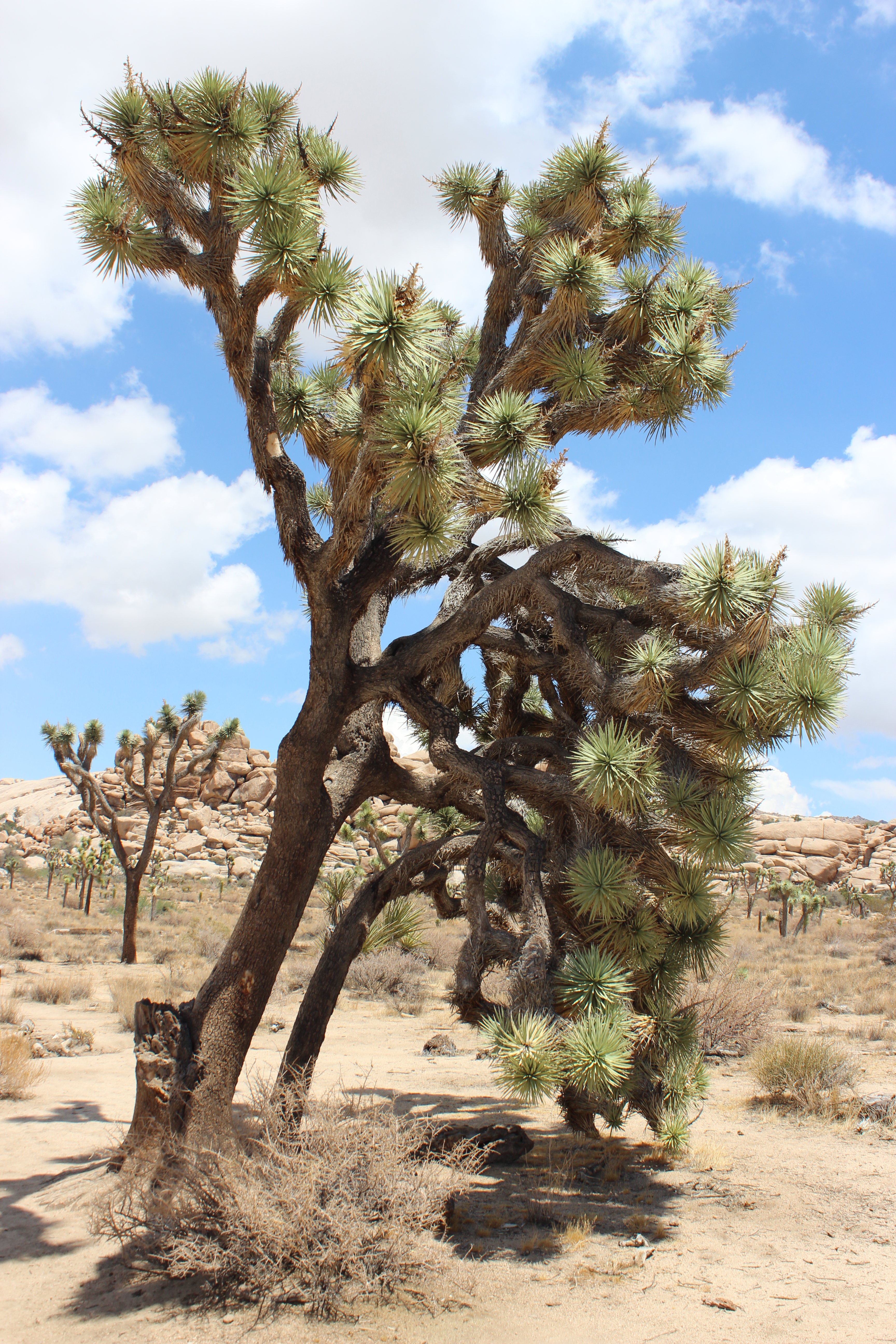 Joshua Tree National Park is known mostly for its thousands of Joshua trees, which grow in the Mojave Desert and very few other places. They’re kind of a mix between a cactus and a tree. They generally have standard tree-looking trunks and branches, but the ends of the branches are pom-poms of cactus spikes, kind of like a person was wearing cactus mittens. According to legend, the tree got its name from Mormon pioneers who thought the branches looked like the outstretched arms of Joshua leading the Jewish people into Israel.