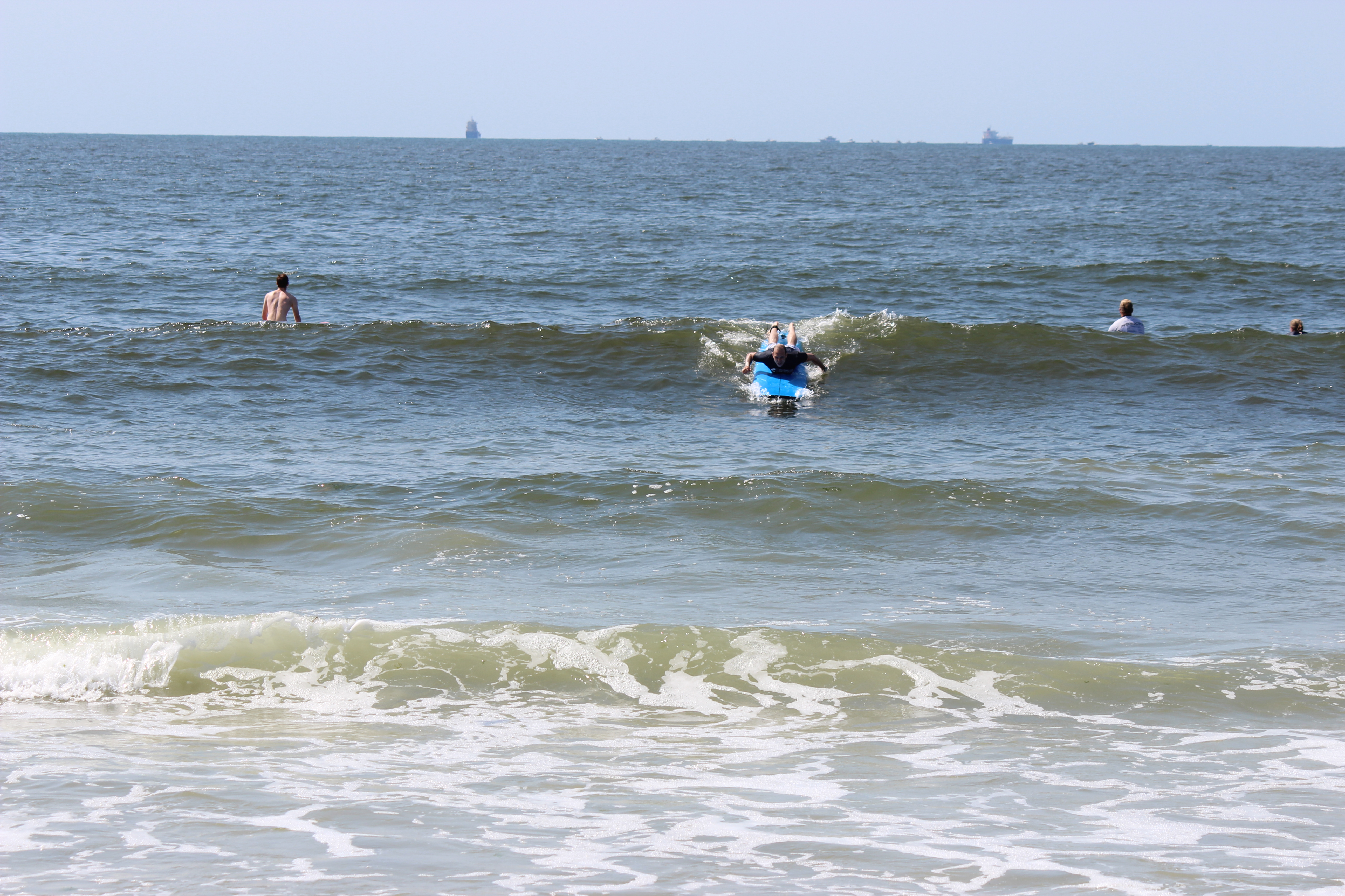 3. At the same time, just about anyone can do it. This week is Surf Week in Long Beach, with various competitions and events throughout the week. Yesterday there was adaptive surfing, and both kids and adults with various paralyses and muscle disorders were surfing with different kinds of help. Today there’s blind surfing: pros tell the kids where to position themselves and when the waves are coming, but then these blind kids do a better job than I did riding the waves. It’s pretty inspiring.